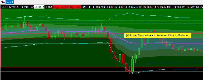 Hello, On my CLZ1 15 min chart, I have the message "[Volume] Symbol needs Rollover. Click to Rollover" since this morning. I've clicked to rollover but nothing is changing. By the way, I don't understand why on te futures Symbol Rollover page I have "CLX1- NYMEX" as new symbol. Please find attached the screen shots of what I'l talking about. I also went to Chart >> Perform Futures Symbol Rollover but nothing changed The I went to Chart >> Reset Child Windows and then select Chart >> Perform Futures Symbol Rollover. There also, nothing changed. Can you tell me what to do to remove the message "[Volume] Symbol needs Rollover. Click to Rollover" Regards, |
