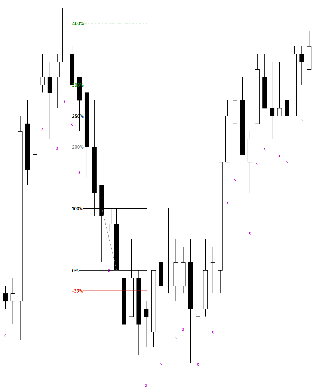 if (sc.IsFullRecalculation) { s_UseTool Tool; //Tool.Clear(); Tool.ChartNumber = sc.ChartNumber; Tool.DrawingType = DRAWING_RETRACEMENT; Tool.ExtendLeft = 1;// Extend the horizontal retracement lines to the left of the chart region. if (r_LineNumber != 0) Tool.LineNumber = r_LineNumber; int BarIndex = sc.ArraySize - 100;// 100 bars back and from high to low BarIndex = max(BarIndex, 0); Tool.BeginDateTime = sc.BaseDateTimeIn[BarIndex]; Tool.EndDateTime = sc.BaseDateTimeIn[sc.ArraySize - 1]; Tool.BeginValue = sc.High[sc.ArraySize - 1]; Tool.EndValue = sc.Low[BarIndex]; Tool.Color = RGB(255, 0, 255); // Magenta Tool.AddMethod = UTAM_ADD_OR_ADJUST; for (int LevelIndex = 0; LevelIndex < 16; LevelIndex++) Tool.RetracementLevels[LevelIndex] = LevelIndex * 10.0f; Tool.ShowPrice = 1; Tool.ShowPercent = 1; Tool.RoundToTickSize = 0; Tool.TextAlignment = DT_VCENTER; // label vertical alignment Tool.AddAsUserDrawnDrawing = 1; sc.UseTool(Tool); r_LineNumber = Tool.LineNumber;//Remember line number which has been automatically set } else if (sc.UpdateStartIndex < sc.ArraySize - 1) { // Update the drawing s_UseTool Tool; Tool.RetracementLevels[10] = FLT_MAX;//remove the 11th level int BarIndex = sc.ArraySize - 100;// 100 bars back and from high to low BarIndex = max(BarIndex, 0); Tool.BeginDateTime = sc.BaseDateTimeIn[BarIndex]; Tool.EndDateTime = sc.BaseDateTimeIn[sc.ArraySize - 1]; Tool.ChartNumber = sc.ChartNumber; Tool.AddMethod = UTAM_ADD_OR_ADJUST; Tool.LineNumber = r_LineNumber; //Tool.UseToolConfigNum = 2; Tool.AddAsUserDrawnDrawing = 1; sc.UseTool(Tool); } Sierra Chart Support - Engineering Level Your definitive source for support. Other responses are from users. Try to keep your questions brief and to the point. Be aware of support policy: https://www.sierrachart.com/index.php?l=PostingInformation.php#GeneralInformation For the most reliable, advanced, and zero cost futures order routing, use the Teton service: Sierra Chart Teton Futures Order Routing |