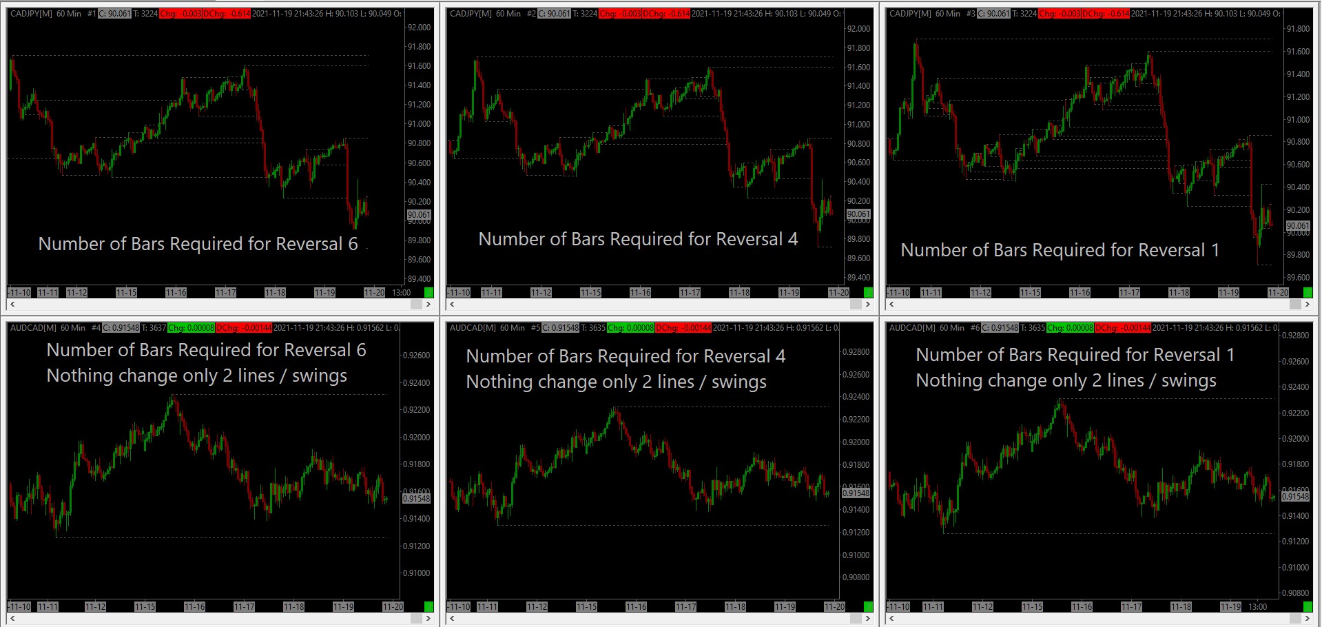 You have to look at the various inputs and decide what you need to set on a per chart basis. There is no magical set of numbers that will work for all charts since the data for every chart is different. And you need to modify more than just the number of bars for reversal, you also need to modify the Reversal%/Value, and other Inputs depending on how you want them set.