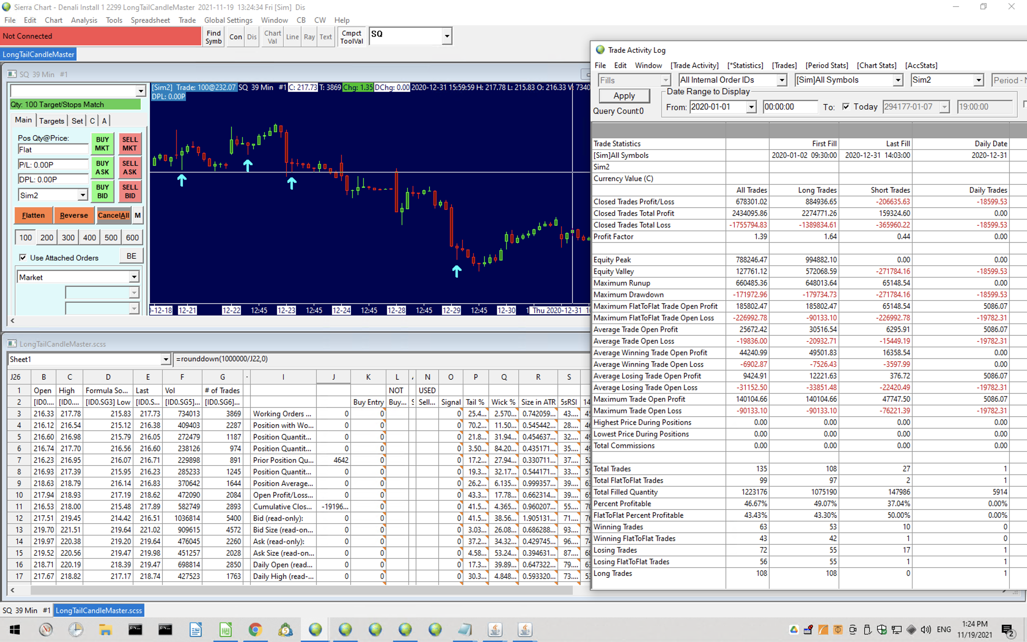 You can look at the Trade Activity Log and confirm, that the submission of orders were the result of Long Entry: Trade Activity Log: Viewing Historical Trade Activity You need to look at the Order Action Source field. You next need to examine all of the order fill matching to understand what is happening and set the starting Date-Time properly according to the first fill: Trade Activity Log: Understanding and Setting the Start Date-Time for a Trades List Sierra Chart Support - Engineering Level Your definitive source for support. Other responses are from users. Try to keep your questions brief and to the point. Be aware of support policy: https://www.sierrachart.com/index.php?l=PostingInformation.php#GeneralInformation For the most reliable, advanced, and zero cost futures order routing, *change* to the Teton service: Sierra Chart Teton Futures Order Routing Date Time Of Last Edit: 2021-11-23 14:19:40