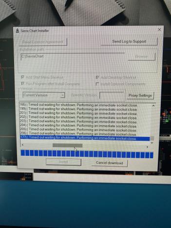 We do not observe this issue. We ran a test now. Since we cannot see the full log, we do not know what the specific issue is in your case. As an alternative, use the ZIP installer: Software Download: Sierra Chart Zip Installer Sierra Chart Support - Engineering Level Your definitive source for support. Other responses are from users. Try to keep your questions brief and to the point. Be aware of support policy: https://www.sierrachart.com/index.php?l=PostingInformation.php#GeneralInformation For the most reliable, advanced, and zero cost futures order routing, *change* to the Teton service: Sierra Chart Teton Futures Order Routing Date Time Of Last Edit: 2021-11-25 14:38:40