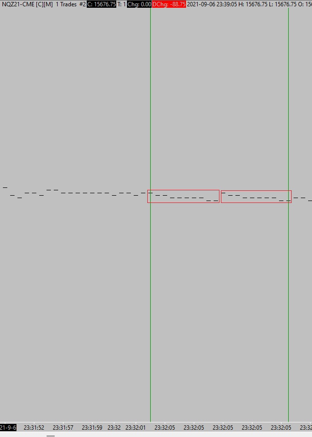 Hello I wrote an ACSIL study which references a tick chart of the type “Number of trades per bar == 1“. Almost 99.9% of the time the study works correctly, but suddenly it does output nonsens data. I started investigating and found data sequence errors in the chart. What I mean is, there should not be a tick with an older timestamp than the previous one. The time stamps should only be ascending and not suddenly descend for few ticks. Further more I figured out, this behavior happens as soon I connect to the data feed and it is performing the backfill. The data sequence error happens more or less at the boundary of the already existing data and the new one. According to the attached DSE* pictures, there are duplicated sequence of ticks. Example: There are following ticks on the chart. 1 2 3 4 5 6 7 8 9 You connect to the data feed. Instead getting only the ticks 10 11 12 13 14 15 …… you get also a few of the already existing ticks. 6 7 8 9 10 11 12 13 14 15 As a consequence you have a few duplicate ticks in the chart. You can check this also in the Intraday data editor. 1 2 3 4 5 6 7 8 9 6 7 8 9 10 11 12 13 14 15 The amount of duplicated ticks is not fix. In the attached examples its something between three ticks and ten ticks. I use the Sierra Chart delayed data feed. I know we can/should expect data errors, but since this happens each time when I connect to the data feed, I think there is something to improve. It is not symbol related. Kind regards |