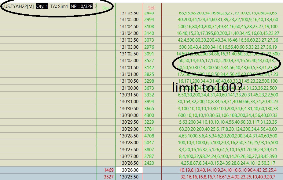 Whatever data you are setup to get data from us (Denali Exchange Data Feed or Sierra Chart Exchange Data Feed), then you it does not matter what the Service setting is set to, that data will come from us. For instance, in your case, you are setup to get the CBOT with Market Depth through the Denali Exchange Data Feed, so for any symbol that trades on the CBOT you will be getting the data from our Denali Exchange Data Feed. Any other symbol, however, we would expect to come from your trading service (CQG in your case). I have another question! How do I set a limit for bid/ask Market Orders Columns? I don't see the symbol I get from CQG WebAPI in the Symbol Settings menu Global Setting?