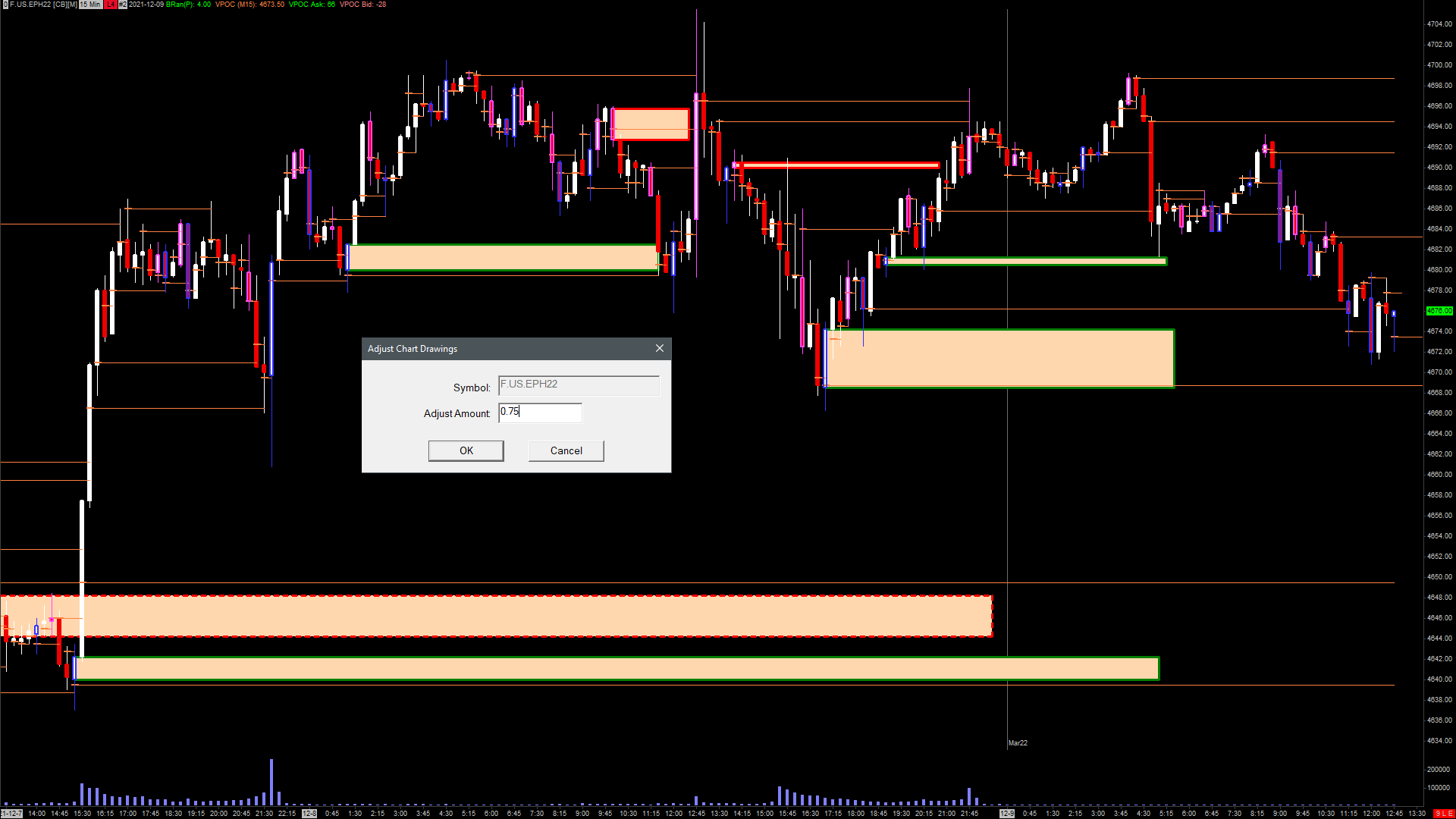 To mark my levels I use rectangles and also different lines. Some of the levels go back several months. To avoid redrawing the levels after rollover, I manage the adjustment with the tool "Manage Chart Drawing Window". Therefore it is very important for me to know the exact adjustment value, because I use "back adjusted". As I have read, the calculation is based on the open historical price of both (current and next following) contracts and then the difference will be calculated. For several days now I have been watching the Dec21 and Mar22 contracts of ES and FESX (historical). I noticed that on the current day, the difference always deviates from the previous days. So we have today for the ES a difference of 5 points and for the FESX of 14.5 points. On the next day, however, these values are corrected again (I assume after closing of Stock Exchange). So the ES shows a permanent difference of 6.75 and the FESX of 2 points. Tomorrow we will no longer see the differences of 5 and 14.5 points, but 6.75 and 2 points (so far). My question now is what difference value do I need to work with on rollover day to have a clean adjustment of my Drawings. Or maybe should I adjust the Drawings one day after the Rollover. Which value is taken by you on the rollover day and can it be that this value changes again on the next day? I would be very happy if you could tell me exactly how I should proceed. Many thanks |