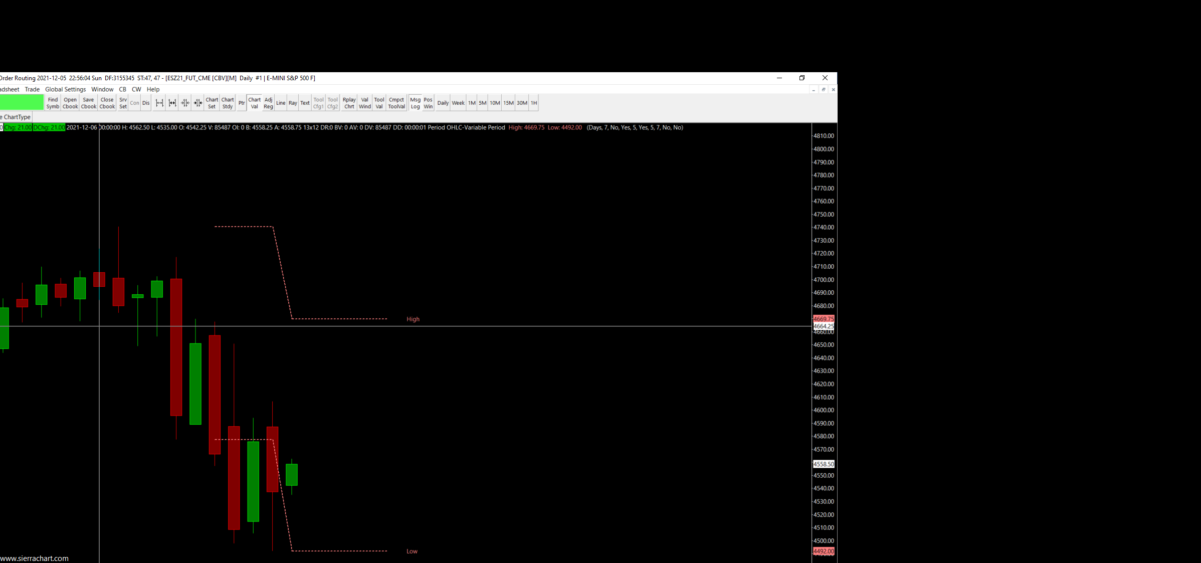 Was wondering why line is stair stepped.  Just trying to have an extended horizontal line drawn at beginning of week for previous weeks open high lows. Here is chart and current settings. https://www.sierrachart.com/image.php?Image=1638766565511.png  |