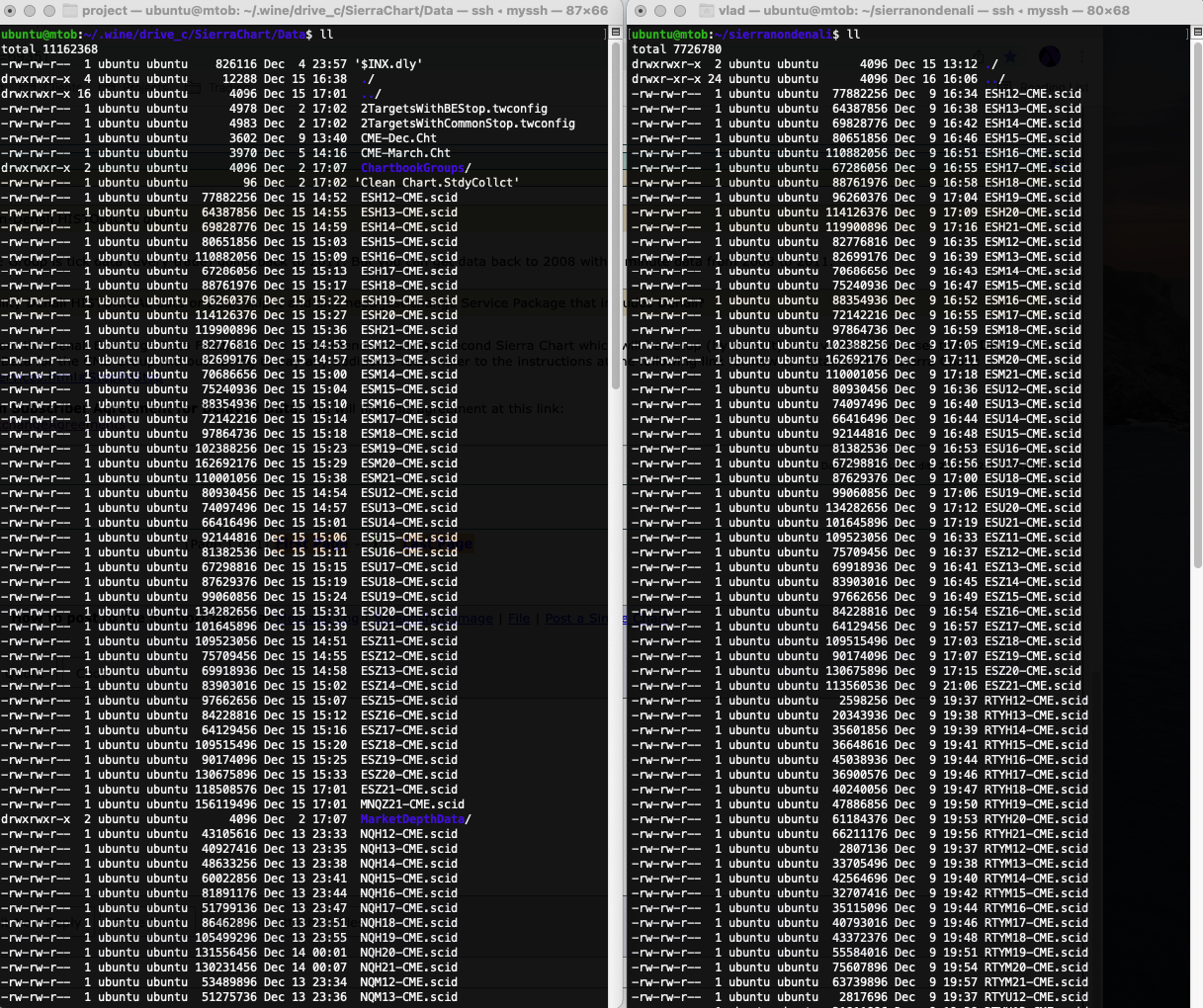 To begin with, those files should be the same, as they are for the symbols that are used for SC Data - All Services. When you are connected to CQG, your symbol for ES would be F.US.EPZ21, for the December 2021 contract. Therefore, you would need to look at the file named F.US.EPZ21.scid to see the size of that file. But, this does make us wonder if you were previously connected to CQG or not. If not, then you would have been getting the data from us all along, although the original error message you mentioned is confusing then. Also, what are you seeing within the data itself (the Denali Data) that makes you say that it is not correct? For the most reliable, advanced, and zero cost futures order routing, use the Teton service: Sierra Chart Teton Futures Order Routing |
