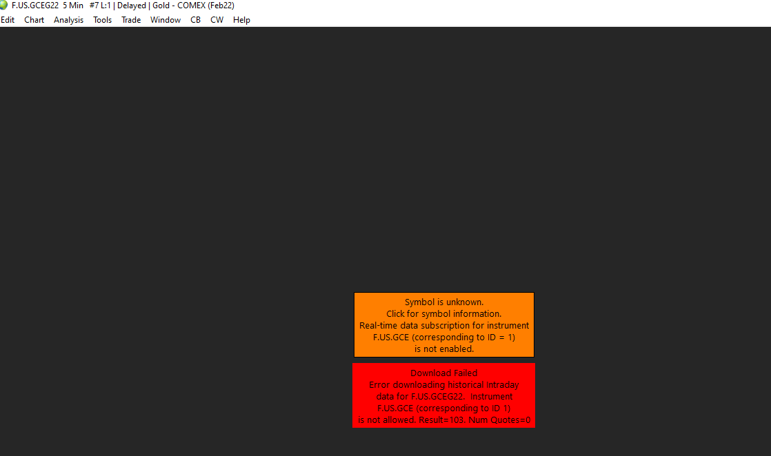 The reason why you are getting those messages is because the exchange you had activated for the Denali Exchange Data Feed did not automatically renew on December 1, 2021. And since you are not setup to get the data from CQG, you are getting those error messages. To fix this, just activate the exchanges you want at the following link: https://www.sierrachart.com/UserControlPanel.php?page=DenaliDataFeed#Exchanges Quite honestly, we have no idea why you were not getting these messages starting on December 1, 2021. You really should have been. For the most reliable, advanced, and zero cost futures order routing, use the Teton service: Sierra Chart Teton Futures Order Routing |
