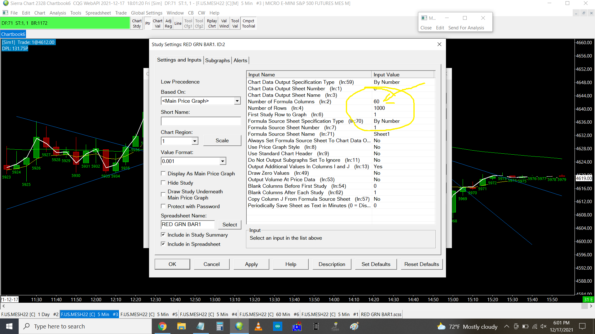 The first issue is that the column you are entering data into is not a "Formula Column", therefore it does not populate down like the columns K-Z (by default) will do. There is an Input for Number of Formula Columns. The second issue we can not reproduce. Our formula stays in the cell. If you are putting a formula into a cell in that column for a reason, then try moving to a column further away from the Study Subgraph data columns. See if that will resolve the deleting issue. For the most reliable, advanced, and zero cost futures order routing, use the Teton service: Sierra Chart Teton Futures Order Routing |