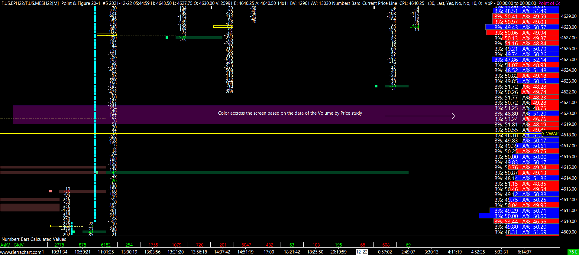 The Volume by Price study shows the volume at price I want to color across the screen based on a value of the Volume by Price study.https://www.sierrachart.com/image.php?Image=1640173503477.png