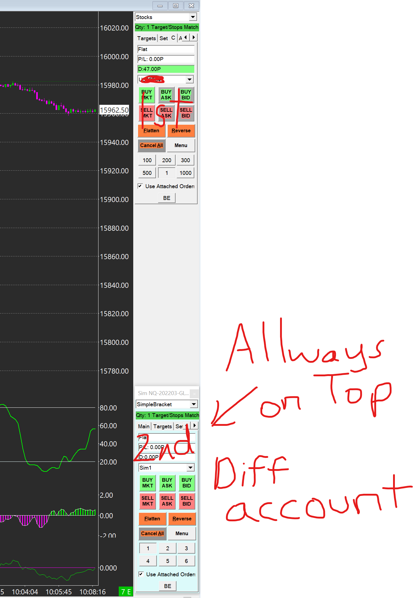When running 2 instances of SC anyway to get the 2nd instance's trade window to be "Always on Top" so it can be below the 1st instance trade window. |