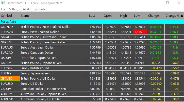 My quoteboard Change & Change% as with the embedded DChg% on charts is not a daily change (see enc.) Is this just an issue with Lmax or can I fix it? |