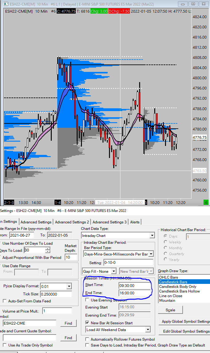 session time for the TPO chart which is correct, i just dont want the evening session on my candlestick chart