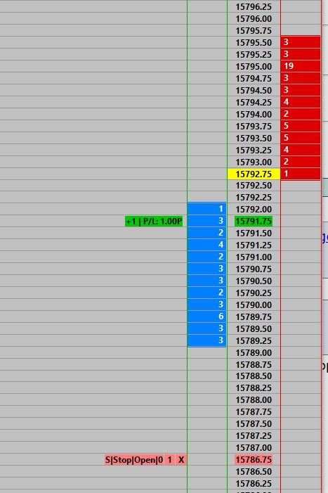 Scenario: I am in a trade using the DOM, I have an open long position, a 20 tick stop and no target order. Price has moved in my favor say 4 ticks, I want to close the position before it moves against me. (see attached screen shot where I captured this scenerio) Option 1: Drag my stop to current bid/ask and get filled (price may move many ticks while I get this done) Option 2: Hit Flatten (price may move and my fill may be bad) Option 3: Place a sell limit order (because I have attached orders turned on, I will end up with a DOM with other orders that have to be cancelled before they accidently get filled) Question 1: Is there a way to create a shortcut to move an order using a mouse click instead of click and drag on the DOM? Question 2: In my other platform there is an option to CANCEL all open orders when one order is filled, is this an option in Sierra Chart? |