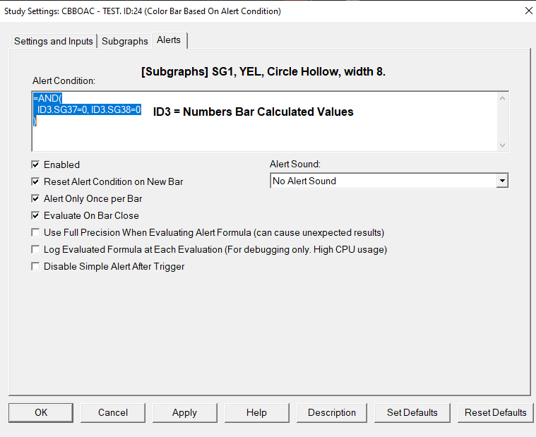 Refer to: Study/Chart Alerts And Scanning: The Effect of the Value Format on Identifier Values (The Effect of the Value Format on Identifier Values) Sierra Chart Support - Engineering Level Your definitive source for support. Other responses are from users. Try to keep your questions brief and to the point. Be aware of support policy: https://www.sierrachart.com/index.php?l=PostingInformation.php#GeneralInformation For the most reliable, advanced, and zero cost futures order routing, *change* to the Teton service: Sierra Chart Teton Futures Order Routing Date Time Of Last Edit: 2022-01-09 01:05:27