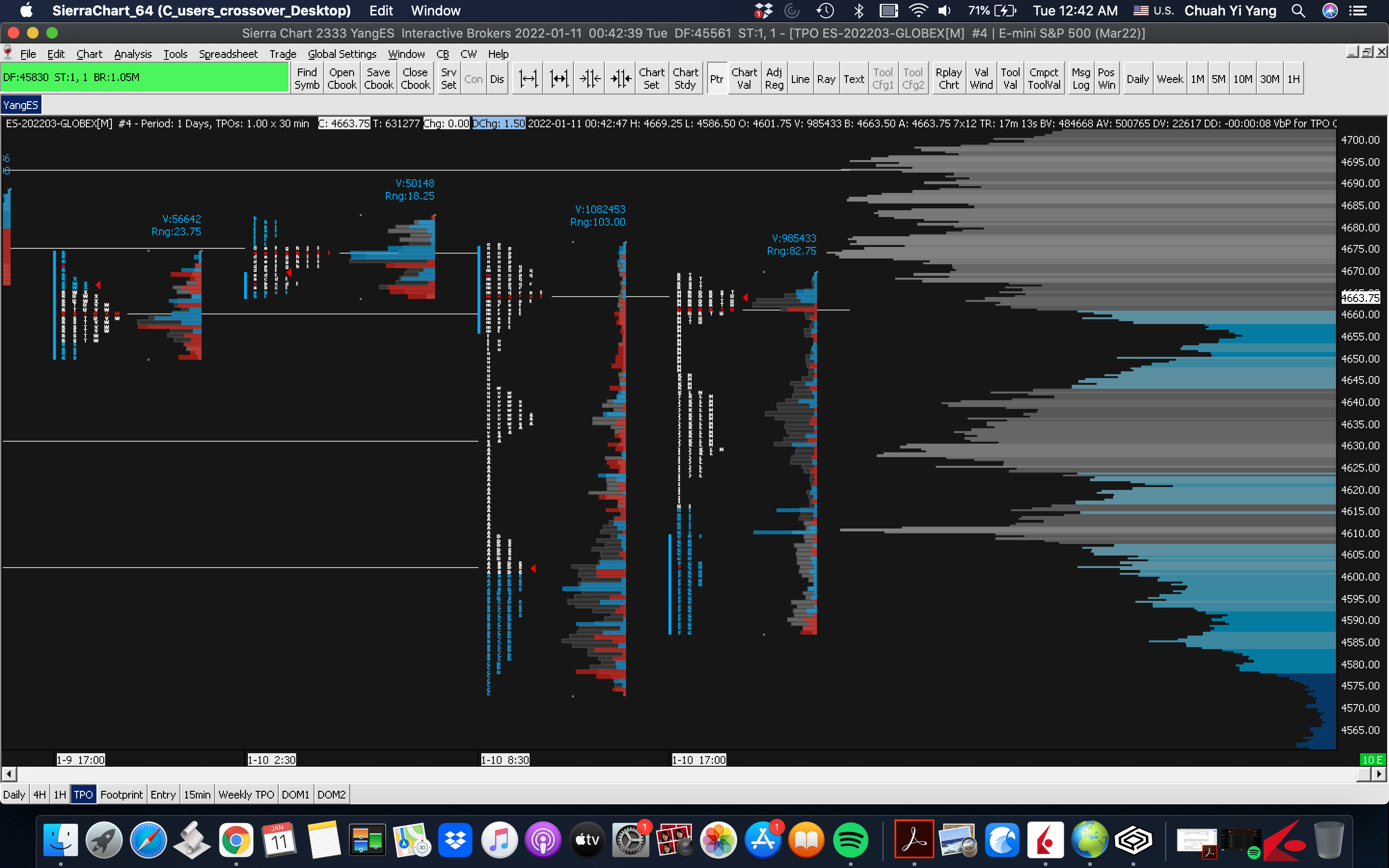 That is what we were referencing you to. It just depends on what you need and where to find it. As mentioned previously, the Numbers Bars Calculated Values give a large number of data points. Or, you can find another study to do what you want. Then to display the data on another chart, you can use the Text Display For Study From Chart study. Refer to the following: Text Display For Study Or you can overlay the other study: Study/Price Overlay Study For the most reliable, advanced, and zero cost futures order routing, use the Teton service: Sierra Chart Teton Futures Order Routing |