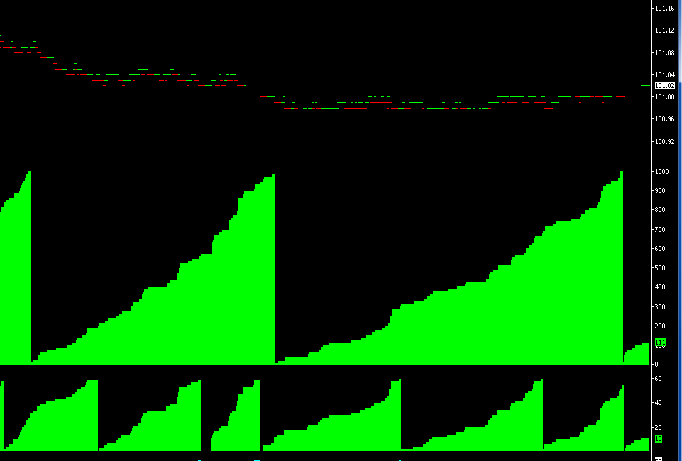 I wanted to see if/how "sc.OnExternalDataImmediateStudyCall = true" effects chart update. Setting chart update interval to 2000ms, I expected two outcomes: A. It will plot the chart slow but give true values of studies on every chart update. B. Or it will really refresh the chart when ever there is new trade. I had a study that plotted the local pc millisecond timestamp on a 1 tick chart. In the attached picture, top study is local milliseconds and bottom study is local seconds. For some odd reason the milliseconds just keep going from 0 to 999 in cycles of +/- 150 seconds [two and a half minutes] Setting chart update interval to 1000ms gives the same behavior but with 65-70 second cycles. 500ms also look weird... This means that faster intervals also give wrong timestamps, but since they are fast enough to give more changes we don't know they are wrong. sc.OnExternalDataImmediateStudyCall really works? doesn't seem like it from the plots. |
