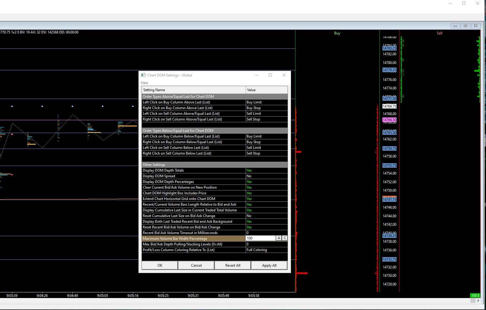 Hi, I have an issue with the volume Bar of the Size/buy and Size/sell columns. There are not proportional with the size of the columns. It is really/thin so it is hard to see where the distinctions between large/middle/low volume. I uploaded a screenshot. How to resolve this? Regards https://www.sierrachart.com/Download.php?Folder=TicketingSystem&download=59638 |