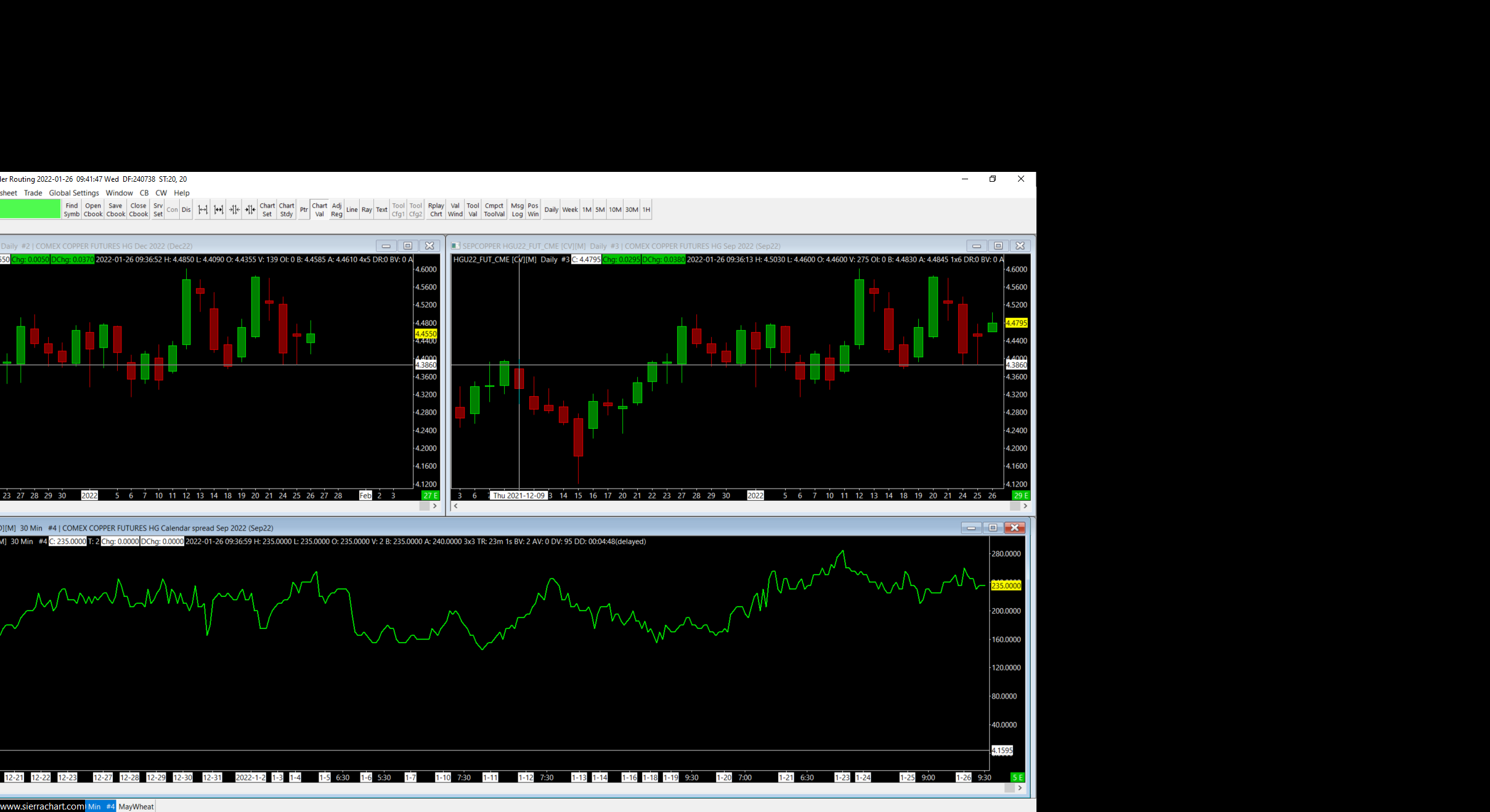 Brought up HGU22(SEPCOPPER)-HGZ22(DECCOPPER)spread, don't understand the y axis values. It seems like market should be around .024 on y axis.. https://www.sierrachart.com/image.php?Image=1643211711351.png |