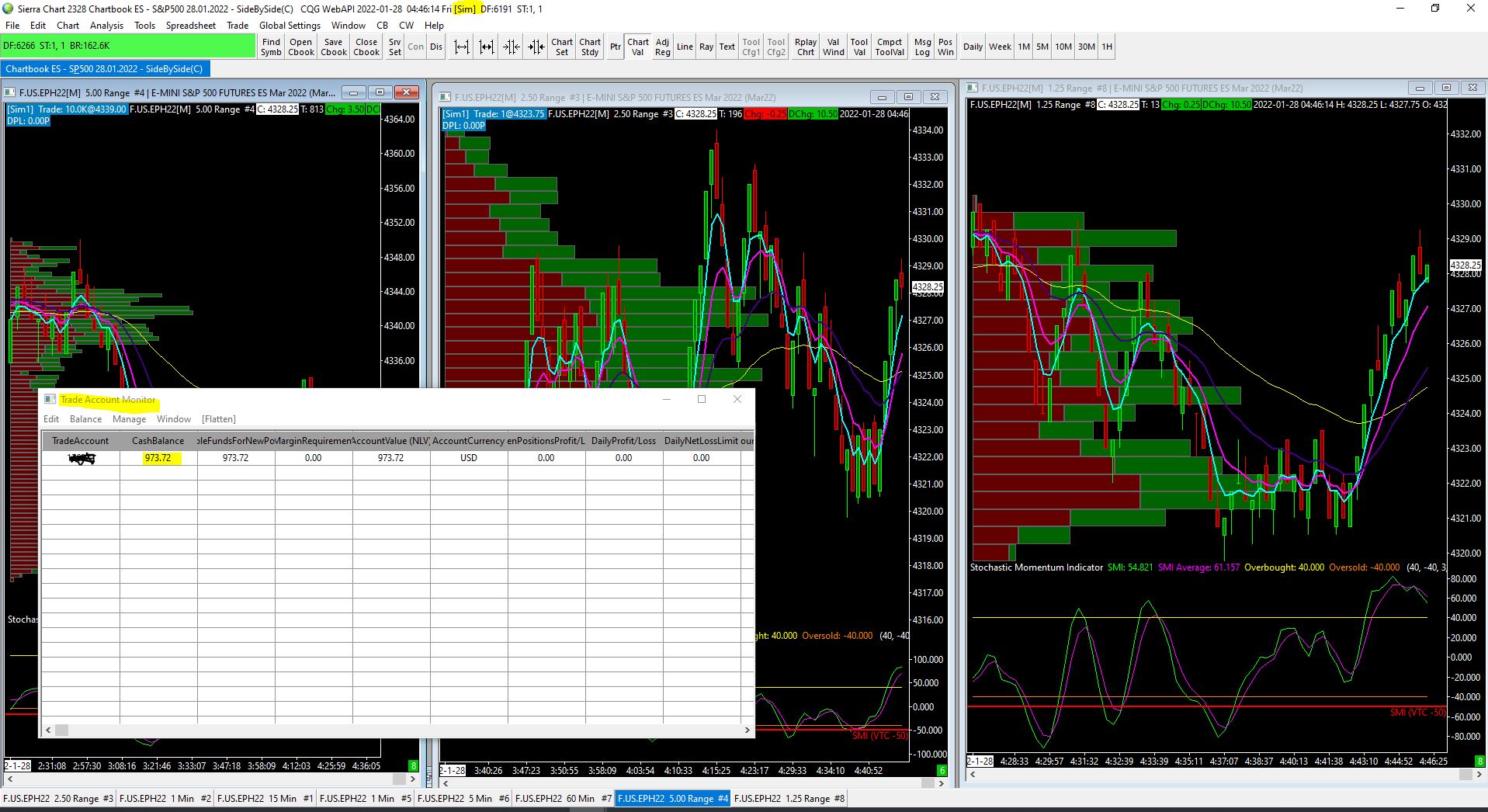From documentation for Trade Simulation Mode: However, Trade >> Trade Positions Window and Trade >> Trade Account Monitor do not provide any information for the internal Trade Simulation Mode of Sierra Chart. There is no account balance tracking in Trade Simulation Mode and positions are viewed only within the charts themselves. Trade >> Trade Orders Window will list simulated orders though.