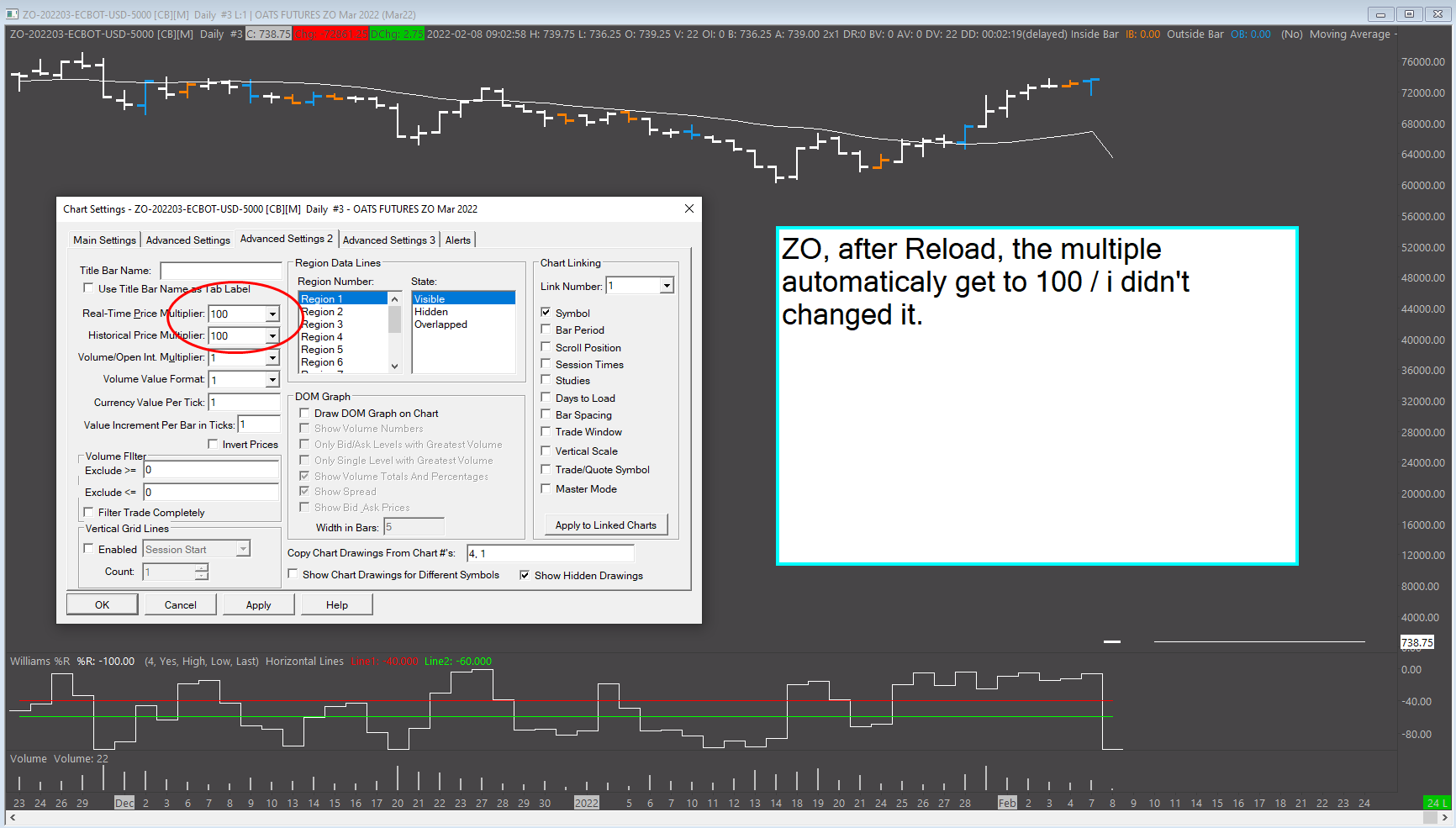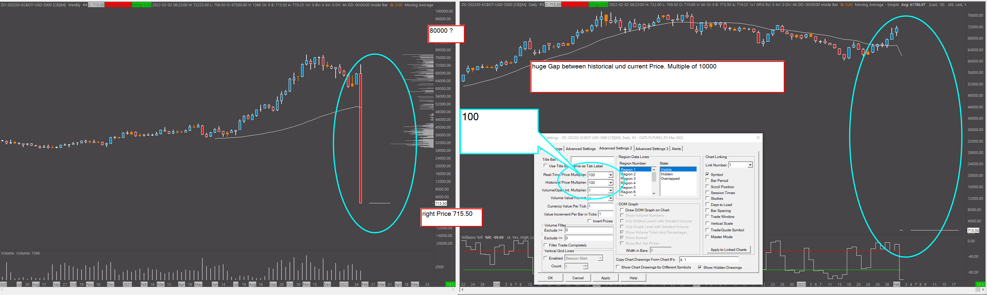 the historical Multipl is 100. i have a chartbook with a quoteboard und use the chart for all instruments in the quoteboad. attached i send you an current Screenshot from ZO with the advanced settings und multipl |