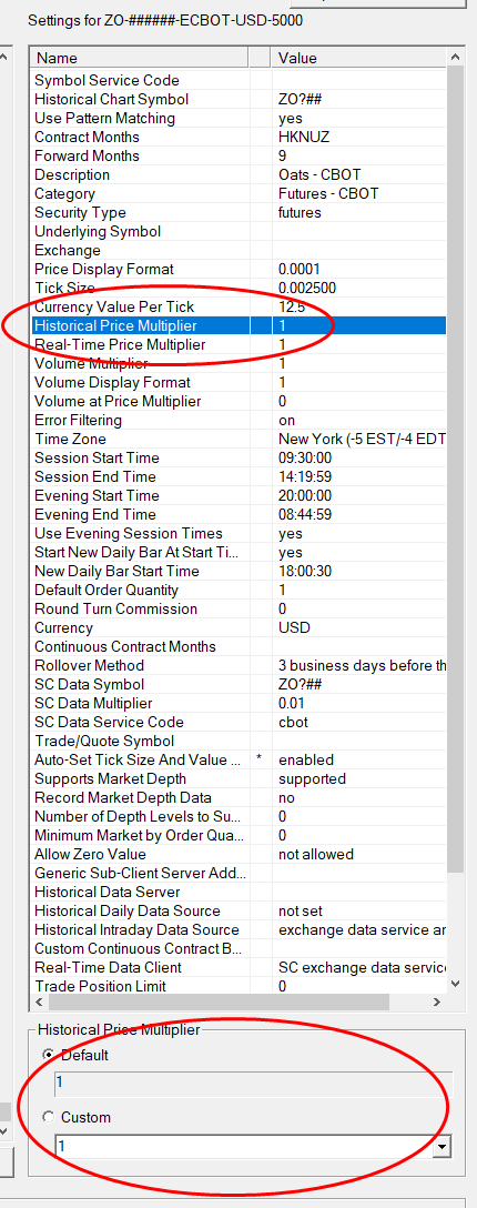 What is the Historical Price Multiplier set to for the chart with a problem?: Chart Settings: Historical Price Multiplier (Chart >> Chart Settings >> Symbol >> Symbol Settings menu) Sierra Chart Support - Engineering Level Your definitive source for support. Other responses are from users. Try to keep your questions brief and to the point. Be aware of support policy: https://www.sierrachart.com/index.php?l=PostingInformation.php#GeneralInformation For the most reliable, advanced, and zero cost futures order routing, *change* to the Teton service: Sierra Chart Teton Futures Order Routing |
