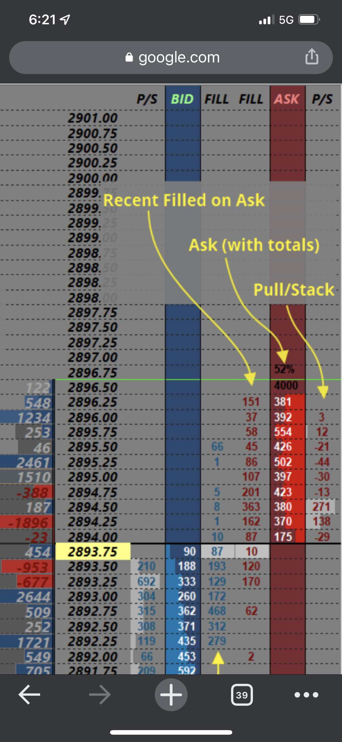 DOM recent fill on bid and ask