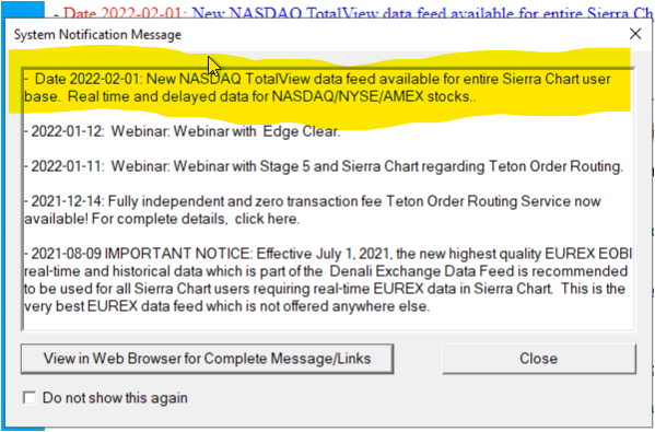 You need to update Sierra Chart to the current version. Instructions: Software Download: Fast Update Sierra Chart Support - Engineering Level Your definitive source for support. Other responses are from users. Try to keep your questions brief and to the point. Be aware of support policy: https://www.sierrachart.com/index.php?l=PostingInformation.php#GeneralInformation For the most reliable, advanced, and zero cost futures order routing, *change* to the Teton service: Sierra Chart Teton Futures Order Routing Date Time Of Last Edit: 2022-02-18 01:13:53