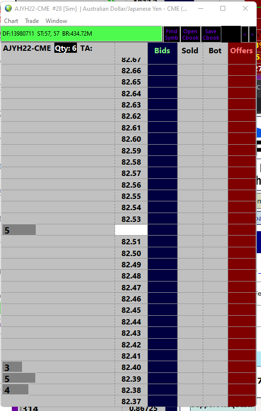 Hi there, For some reason I can't seem to see anything when I use the DOM with AJYH22-CME. I can get data in the charts though. I'm subscribed to the relevant exchange feed too. Is anyone else experiencing this issue? |