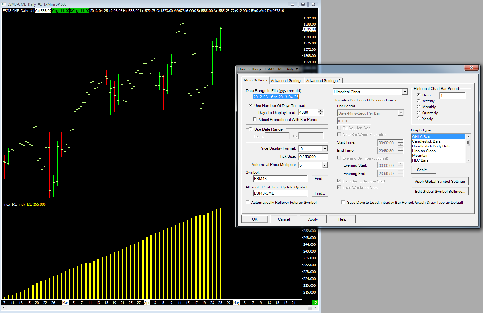 2. No. I did FS-> Open Intraday Chart -> F5-> to Historical w no success The only one chart on the fresh *.cht Also FYI http://www.bigmiketrading.com/sierra-chart/27124-switching-intraday-historical-chart-type-sierra-chart.html Thank you. |