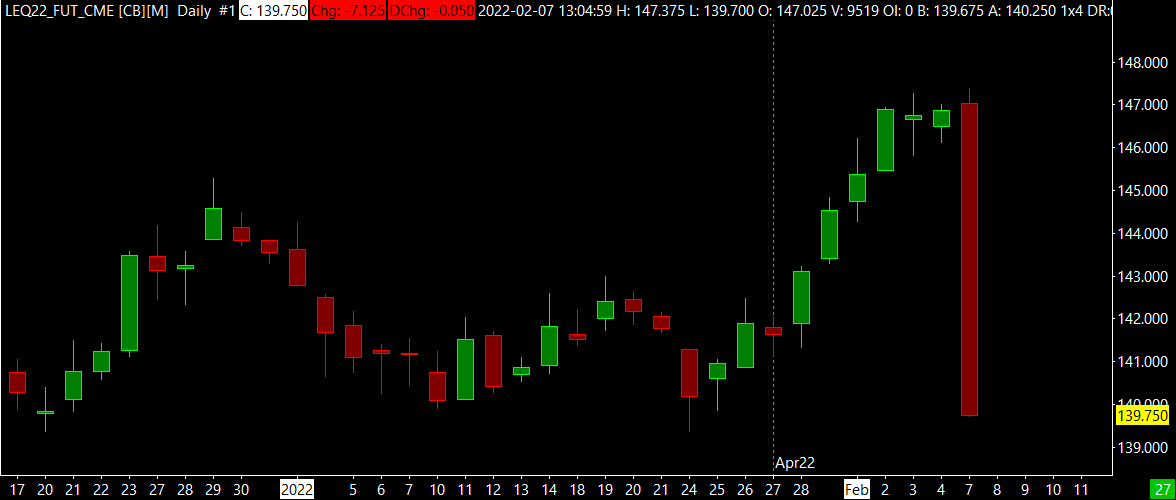 I am trying to do a Continuous June Live Cattle Chart. The past few days are on charts higher than they should be. Chart should look similar to attached chart. https://www.sierrachart.com/image.php?Image=1644277157643.png |