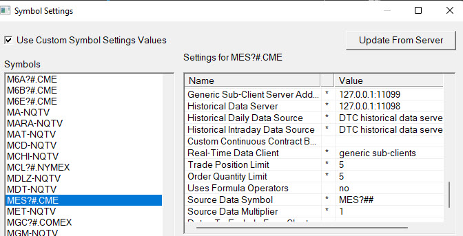 Hi John, I believe I have everything setup correct. Here is the screenshot of MES Global Symbol. Thanks John for your help Regards, Jerome |