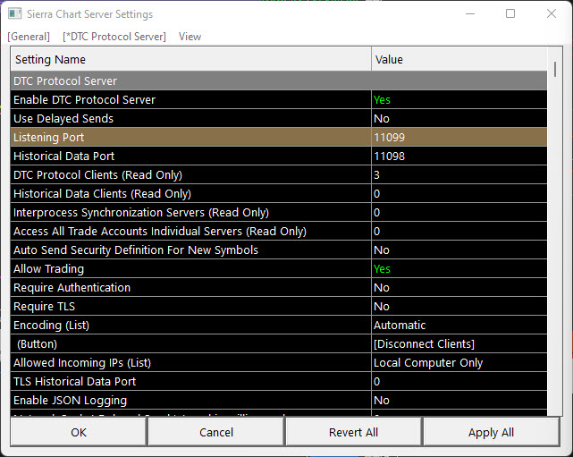 Hi Support, I am trying to setup Multiple Data and Trading Services at the Same time suggested in the article below. Using Multiple Data and Trading Services at the Same Time I believe everything was setup correctly on my end but it's not working correctly. I am not getting intraday or historical data. Here are some screenshots of my configuration. Here is my log from 2nd copy of sierra chart as stated in the document. Software version: 2353 64-bit | 2022-02-13 18:20:47.311 Primary Thread ID: 23500 | 2022-02-13 18:20:47.311 Usage end date: 2022-03-09 | 2022-02-13 18:20:47.311 Enabled for: Advanced Features 2. | 2022-02-13 18:20:47.311 Enabled for: Sierra Chart Historical Data Service. | 2022-02-13 18:20:47.311 Enabled for: Delayed Denali Exchange Data Feed. | 2022-02-13 18:20:47.311 Allow Support for Sierra Chart Data Feeds is enabled. | 2022-02-13 18:20:47.311 Current selected Data/Trading service: Rithmic Direct - DTC | 2022-02-13 18:20:47.311 Custom symbol settings values: enabled | 2022-02-13 18:20:47.311 Chart Update Interval: 800 | 2022-02-13 18:20:47.311 Intraday Data Storage Time Unit: 0 | 2022-02-13 18:20:47.311 Time Zone: -05:00:00 (EST-05EDT+01,M3.2.0/02:00,M11.1.0/02:00) | 2022-02-13 18:20:47.311 2022-02-13 23:20:47 Local computer time in UTC | 2022-02-13 18:20:47.311 2022-02-13 18:20:47 Local computer time in SC Time Zone | 2022-02-13 18:20:47.311 2022-02-12 13:15:53 Server time in UTC | 2022-02-13 18:20:47.311 Local computer UTC time and Server UTC time difference: 1 seconds. | 2022-02-13 18:20:47.311 Program path: F:\SierraChart - Helios 100K\ | 2022-02-13 18:20:47.311 Data Files path: F:\SierraChart - Helios 100K\Data\ | 2022-02-13 18:20:47.311 OS Version Number: 10.0 | 2022-02-13 18:20:47.311 Locale Setting: C | 2022-02-13 18:20:47.311 DLLs: DeltaPivotPoints_64 (1).dll, DeltaPivotPoints_64.dll, FootprintReversalSystem_64.dll, OFA Bars (by Zdislav)_2151_64.dll, OrderFlowLabs.com.beta_64.dll, OrderFlowLabs.com_64.dll, sst_draw_imbalance_64.dll, sst_FreeBundle_64.dll, UserContributedStudies_64.dll, zyp sierra free 2020_2151_64.dll, zyp sierra free 2021_2151_64.dll, zyp sierra free_2151_64.dll | 2022-02-13 18:20:47.312 Allowed protected custom studies: OrderFlowLabs.com, OrderFlowLabs.com Beta, SST_FreeBundle | 2022-02-13 18:20:47.312 HTTPS connection ID:259 to www.rithmic.com:443 for request ID:259 (1) | Creating socket. Using TLS 1.2. | 2022-02-13 18:20:52.388 HTTPS connection ID:259 to www.rithmic.com:443 for request ID:259 (1) | New receive buffer size: 32768 | 2022-02-13 18:20:52.388 HTTPS connection ID:259 to www.rithmic.com:443 for request ID:259 (1) | Connecting to IP: 38.79.0.89. | 2022-02-13 18:20:52.388 HTTPS connection ID:259 to www.rithmic.com:443 for request ID:259 (1) | Socket gracefully closed by remote side. | 2022-02-13 18:20:52.445 HTTPS connection ID:259 to www.rithmic.com:443 for request ID:259 (1) | CloseSocket call. | 2022-02-13 18:20:52.445 HTTPS connection ID:259 to www.rithmic.com:443 for request ID:259 (1) | Graceful close received or receive error. Shutdown complete. Closing socket now. | 2022-02-13 18:20:52.445 HTTPS connection ID:259 to www.rithmic.com:443 for request ID:259 (1) | Closed. | 2022-02-13 18:20:52.445 Rithmic Direct - DTC | Using server connection: Rithmic 01-Chicago Area-Aggregated | 2022-02-13 18:21:02.670 Rithmic Direct - DTC | Connecting to the server rsc.rithmic.com. Port 50503 | 2022-02-13 18:21:02.670 DTC Client socket (1) | Creating socket. Using TLS 1.2. | 2022-02-13 18:21:02.670 DTC Client socket (1) | New receive buffer size: 5242880 | 2022-02-13 18:21:02.670 DTC Client socket (1) | Connecting to IP: 216.57.156.163. | 2022-02-13 18:21:02.670 Rithmic Direct - DTC | Network connection to server complete. | 2022-02-13 18:21:02.696 Rithmic Direct - DTC | Starting socket receive thread. | 2022-02-13 18:21:02.696 Rithmic Direct - DTC | Setting DTC encoding to Binary | 2022-02-13 18:21:02.696 Rithmic Direct - DTC | Sending logon request message. | 2022-02-13 18:21:02.696 Rithmic Direct - DTC | Received logon response. | 2022-02-13 18:21:02.777 Rithmic Direct - DTC | Server Name: . | 2022-02-13 18:21:02.777 Rithmic Direct - DTC | Server protocol version: 8. Client protocol version: 8 | 2022-02-13 18:21:02.777 Rithmic Direct - DTC | Successfully connected. | 2022-02-13 18:21:02.777 Rithmic Direct - DTC | Trading is supported. | 2022-02-13 18:21:02.777 Rithmic Direct - DTC | Order cancel and replace is supported. | 2022-02-13 18:21:02.777 Rithmic Direct - DTC | OCO Orders supported. | 2022-02-13 18:21:02.777 Rithmic Direct - DTC | Symbol and Exchange Delimiter: . | 2022-02-13 18:21:02.777 Rithmic Direct - DTC | Connected to server complete. | 2022-02-13 18:21:02.777 Triggering next historical data download in queue. | 2022-02-13 18:21:02.777 Triggering next historical data download in queue. | 2022-02-13 18:21:02.777 Triggering next historical data download in queue. | 2022-02-13 18:21:02.777 Triggering next historical data download in queue. | 2022-02-13 18:21:02.777 Updated verified funded futures trading account ending date to: 2022-03-15 23:21:02 | 2022-02-13 18:21:02.777 No download requests in the queue to start downloads for. | 2022-02-13 18:21:02.784 No download requests in the queue to start downloads for. | 2022-02-13 18:21:02.784 No download requests in the queue to start downloads for. | 2022-02-13 18:21:02.784 No download requests in the queue to start downloads for. | 2022-02-13 18:21:02.784 Using symbol data fast lookup vector | 2022-02-13 18:21:02.784 Generic Client (127.0.0.1:11099) | Starting real-time market data updates for: MESH2.CME (MESH22). ID: 1 Service code: rithmic.trading | 2022-02-13 18:21:02.785 Generic Client (127.0.0.1:11099) | Connecting to the server 127.0.0.1. Port 11099 | 2022-02-13 18:21:02.785 DTC Client socket (2) | Creating socket. | 2022-02-13 18:21:02.785 Generic Client (127.0.0.1:11099) | Requesting security definition data for: MESH2.CME (MESH22). ID: 1 | 2022-02-13 18:21:02.785 Generic C
