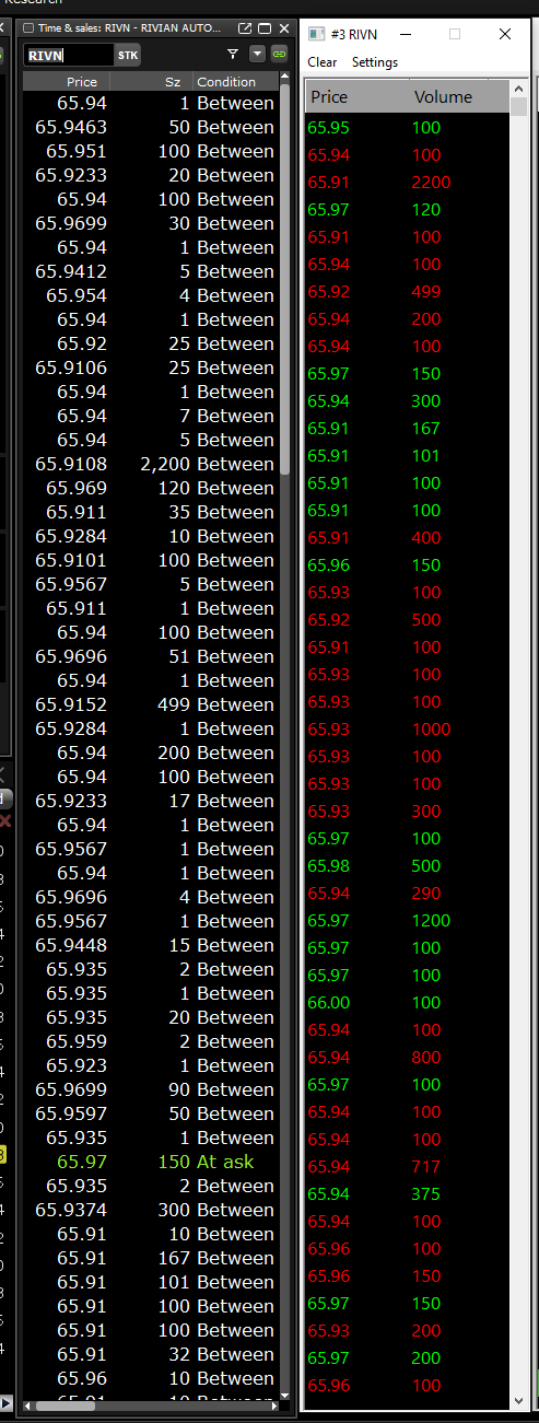 Good afternoon; Currently I trade stocks. The time and sales for sierra chart only show trades as either bid or ask there are no between orders, compared to other brokers, indicated in white in the screenshot. Does sierra chart get more accurate information. In addition, orders lower than 100 in volume are not visible on the tape, even with filters off. How can I enable this. |