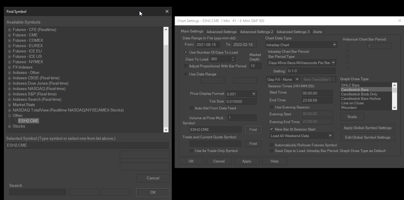 Understand, this is a problem which was caused by you creating new symbol settings for the ES symbol. This is very clear from this screenshot: https://www.sierrachart.com/Download.php?Folder=SupportBoard&download=61496 Notice the ES symbol in the "Other" category. Follow the instructions here to update the Symbol Settings: Global Symbol Settings: Update Global Symbol Settings Disable the use of Custom Symbol Settings Values. Very important. And then follow the instructions here: Global Symbol Settings: Update/Apply Symbol Settings to Charts Sierra Chart Support - Engineering Level Your definitive source for support. Other responses are from users. Try to keep your questions brief and to the point. Be aware of support policy: https://www.sierrachart.com/index.php?l=PostingInformation.php#GeneralInformation For the most reliable, advanced, and zero cost futures order routing, *change* to the Teton service: Sierra Chart Teton Futures Order Routing Date Time Of Last Edit: 2022-02-17 02:32:02