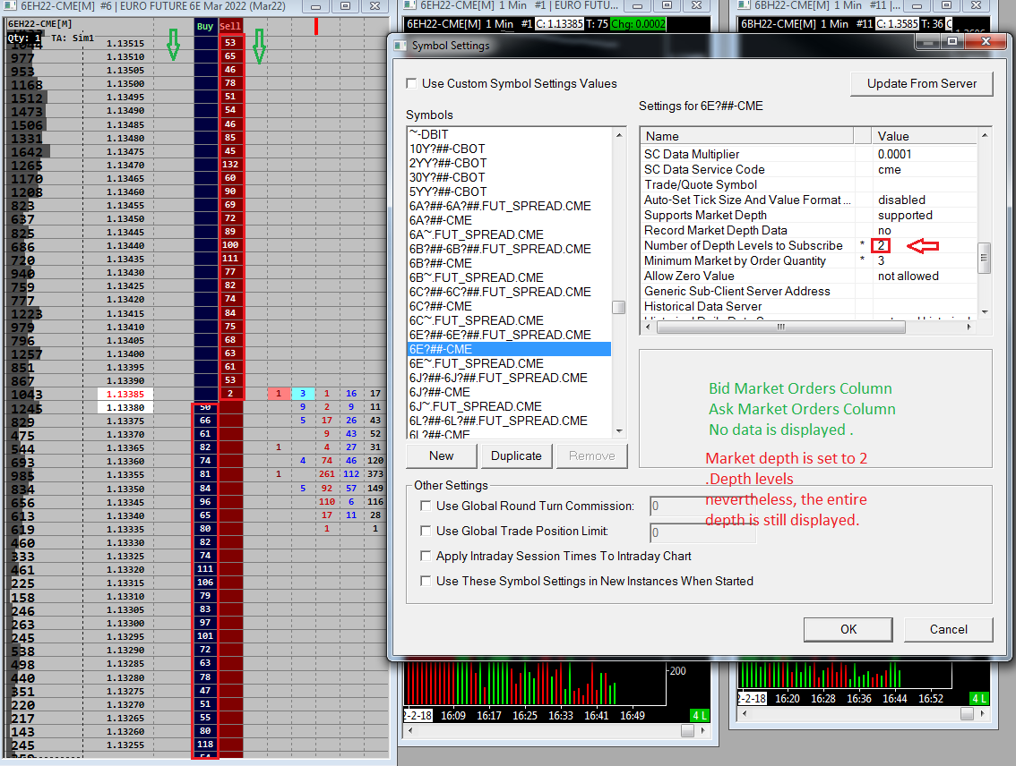 Hello. Today the MBO data has disappeared. I didn't change anything. I will also add Settings in Symbol setting. They don't react. Number of Depth Levels to Subscribe when set to, for example, 10 still shows the entire depth |
