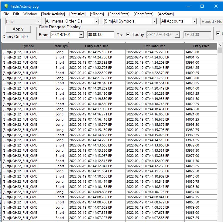 Refer to this post: Important Information About Timestamping (Date-Time) Change in Trade Activity Log And update to the latest prerelease. Sierra Chart Support - Engineering Level Your definitive source for support. Other responses are from users. Try to keep your questions brief and to the point. Be aware of support policy: https://www.sierrachart.com/index.php?l=PostingInformation.php#GeneralInformation For the most reliable, advanced, and zero cost futures order routing, *change* to the Teton service: Sierra Chart Teton Futures Order Routing Date Time Of Last Edit: 2022-02-19 13:58:20