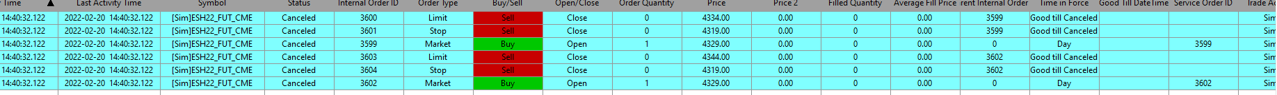 We need to see all of the lines in the Trade Activity Log for one of these orders: Trade Activity Log: Providing Trade Activity Log Data Lines to Support Sierra Chart Support - Engineering Level Your definitive source for support. Other responses are from users. Try to keep your questions brief and to the point. Be aware of support policy: https://www.sierrachart.com/index.php?l=PostingInformation.php#GeneralInformation For the most reliable, advanced, and zero cost futures order routing, use the Teton service: Sierra Chart Teton Futures Order Routing |