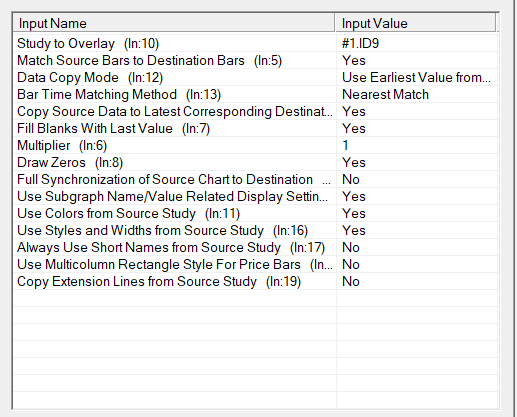 Hi everyone ! I'm building a trading system based around multiple bar volume charts. I take my positions on the smallest volume chart according to what studies on the (four) other charts provide me (here i'm using moving average like studies to give me signals). To get the data from the source charts I use the Price/Study overlay. I have an issue where at the end of a given bar, i get into a trade even though the conditions given by the sources chart are not aligned (anymore). This is probably due to the different update of the various charts and the nature of the Study/Price overlay. Any tips on making sure my trading system acts only if all the sources charts are updated ? (such that it respects my strategy as it would if using AutoTrade Replay BackTest) What factors could enter into play ? Study calculation time ? etc.. Currently I have the Trading System on Very Low Precedence, my trading system takes position only when the bar is closed, the moving average like study on the source chart have no restriction on its calculation. Settings of the Study/Price are attached. Thanks for you help, Date Time Of Last Edit: 2022-02-25 16:48:34