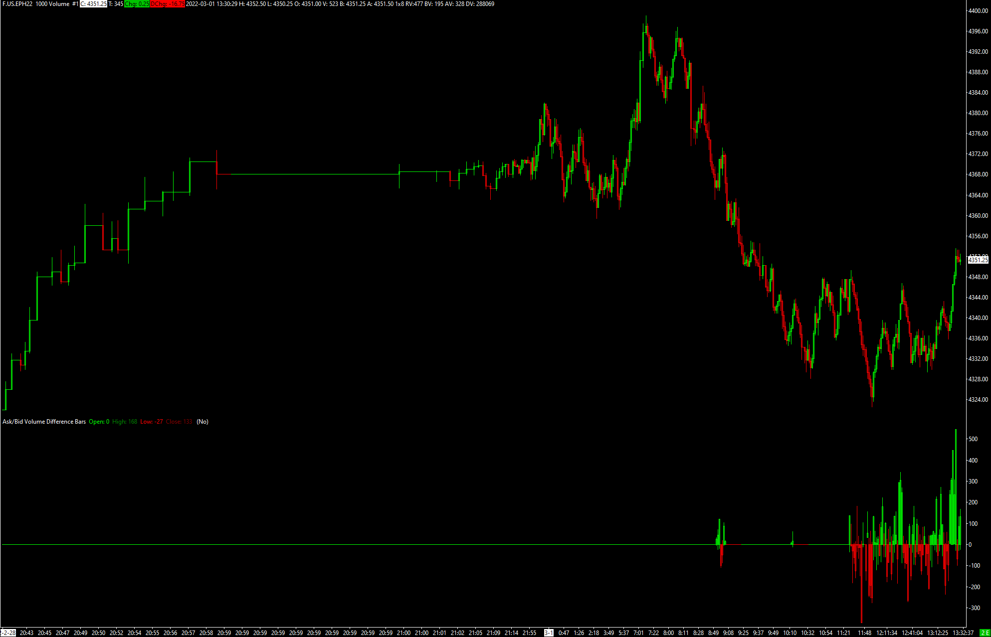 comparing charts from CQG F.US.EPH22 vs. SierraChart feed ESH22, end of the day Friday, Feb. 25/2022, the chart with CQG price feed looks very different than SC price feed, any idea why? in the last screenshot, it seems the bid and ask volume are zero. https://www.sierrachart.com/image.php?Image=1645948675314.png https://www.sierrachart.com/image.php?Image=1645948775134.png https://www.sierrachart.com/image.php?Image=1645948963960.png |