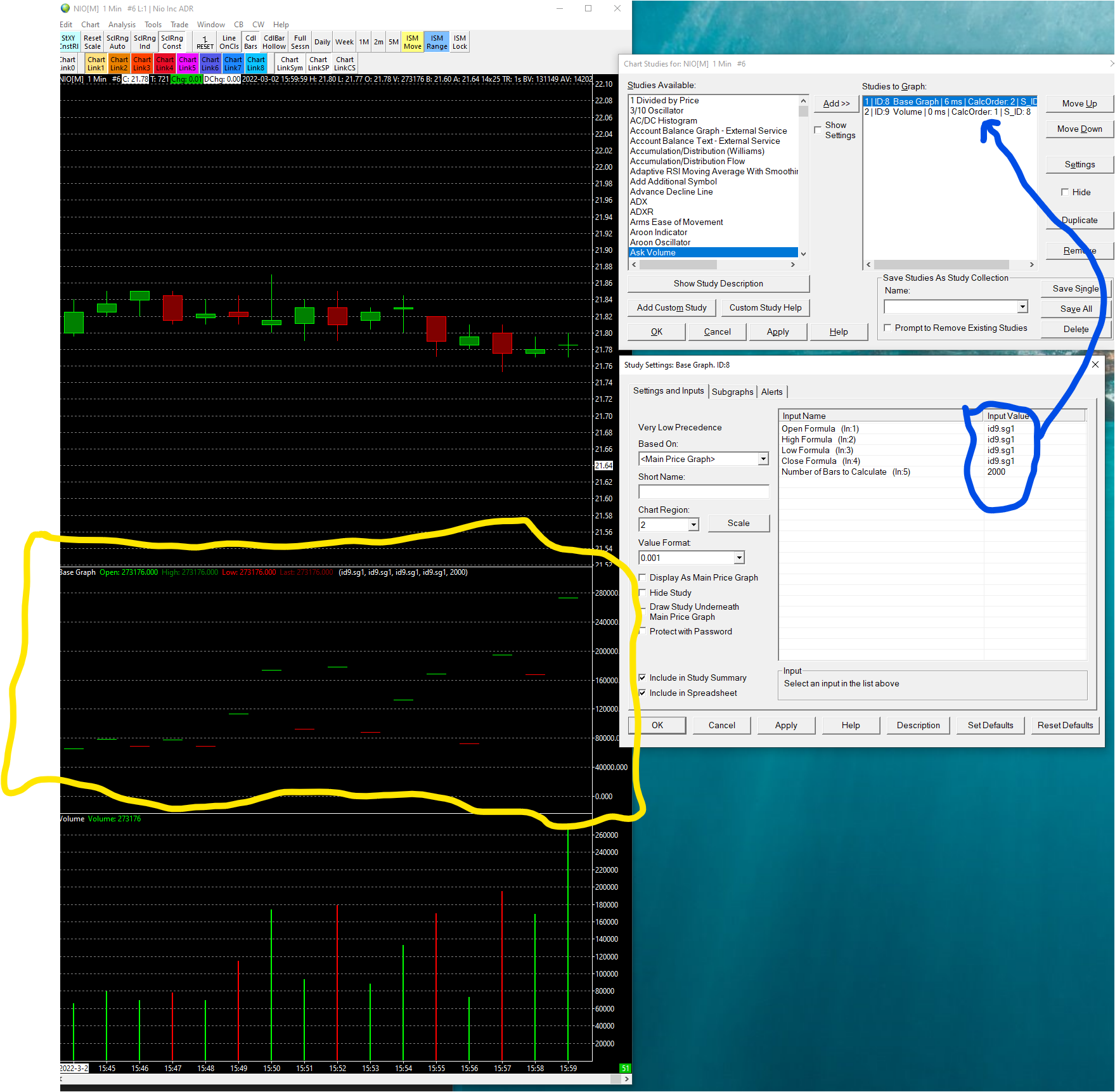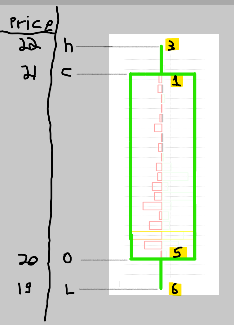 i mange to work with the study overlay-ohlc and spread sheet (bar), BUT the values that i get from my formula (for example) are: 5-open,3-high,6-low,1-close but the chart price (for example) are: 20-open,22-high,19-low,21-close the spread sheet (bar) display me the values 5-open,3-high,6-low,1-close on the chart, at price level 5$,3$... which i dont want /// i want to see those values ( 5-open,3-high,6-low,1-close) on the "real" graph (20-open,22-high,19-low,21-close) //// for example, i want to see in 20-open of the real chart mark for my formula which is 5-open in 22-high of the real chart mark for my formula which is 3-high in 19-low of the real chart mark for my formula which is 6-low in 21-close of the real chart mark for my formula which is 1-close many thanks |