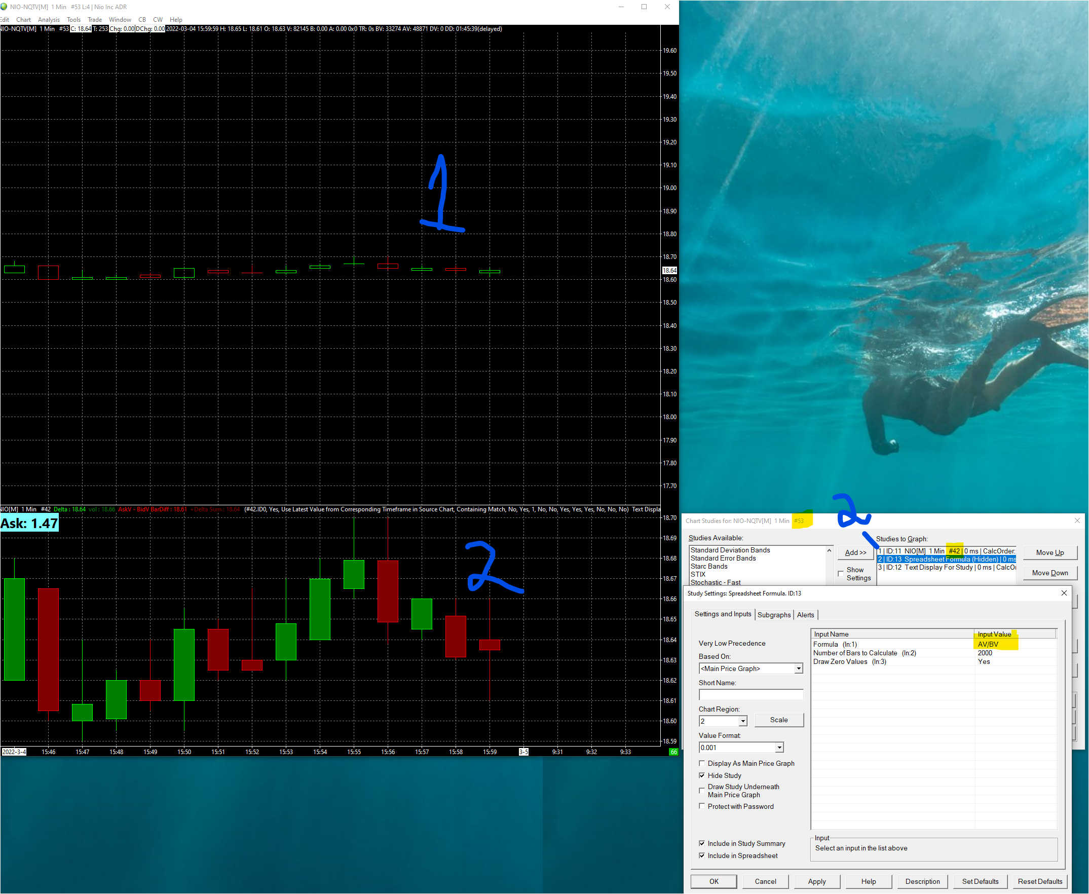 hello all, i'm trying display value of formula i built from chart "2", to chart "1". i used sudy price overlay study( but i didnt mange to reference this chart to a formula...), but it didnt work. what i need to write in the formula (in the pic i uploaded) to reference the equaion to chart number "2" ? thank u :) |