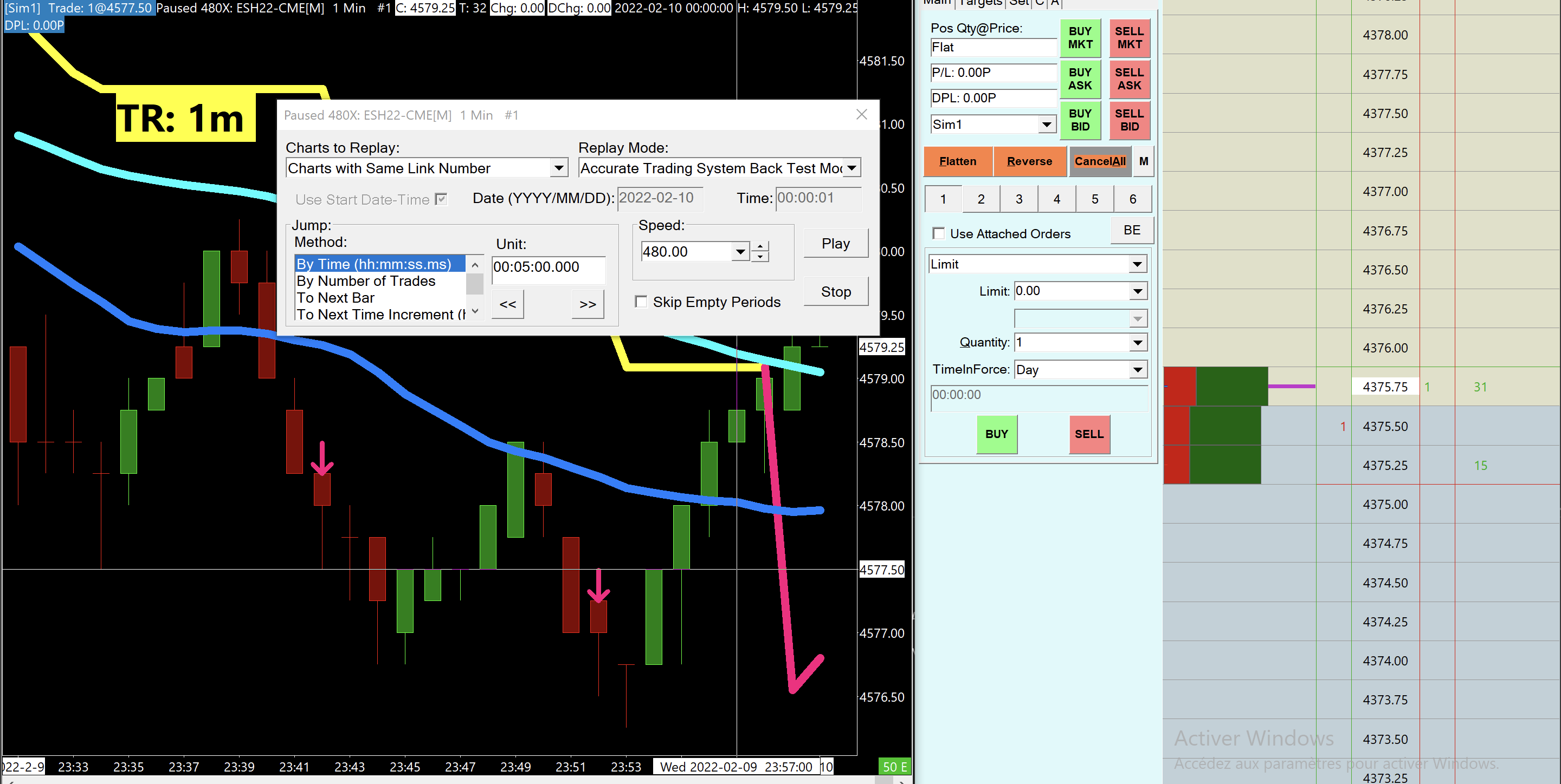 To load all the data you need in the chart, refer to: Historical Intraday Data (Missing Data / Download Errors / Viewing More Data): Downloading/Viewing More Historical Intraday Data Also I got a glitch where when I start the Replay, the DOM wont follow the Historical Chart replay (even if I link these to the same number and ask for replay "charts with same link number".). Sometimes the two work together but it force me to replay the 03 March 2022 day only, any idea of what I got wrong here ? Replaying Charts: Replaying Trade DOM Windows Also when I launch for example the replay for the 03/03, it continue automatically with the 04/03