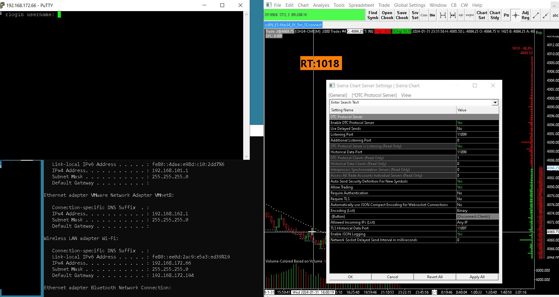 Note: in ClientDialog.cpp , IP address has to be applied IN CODE, like this: #include "stdafx.h" #include "ClientDialog.h" #include "resource.h" client_dlg::client_dlg(UINT resID) : CDialog(resID) , ip_address("192.168.1.10") , logon_state(DTC::LogonStatusEnum::LOGON_ERROR) Otherwise - it always tries to connect to 127.0.0.1, and it does NOT take IP addr from the GUI form PS Sierra's "built in" DTC client - not good for testing; too many restrictions , and what's caused by CME restrictions , and what's due to lack of testing - hard to tell AND: for a very basic connectivity tests, we can always use PuTTY + RLogin [Sierra will kick us out in a few seconds, but we'll be able to see a connectivity prompt - at least , plus - client counter will blink for a few seconds too) Date Time Of Last Edit: 2024-02-01 04:34:47