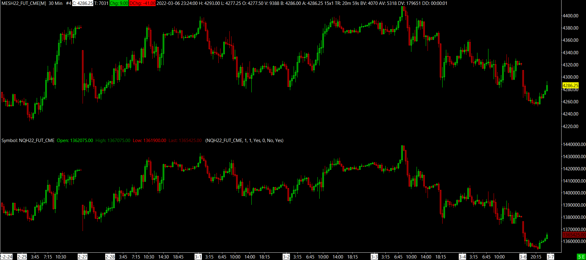 I have a chart of ES and am using Add Additional Symbol Study to have the NQ on chart region 2. The price being brought in by Additional Symbol Study is 1365425.00 and should be 13654.25. Couldn't find where to change settings to correct prices. When NQ is brought in on a separate chart the price is correct. https://www.sierrachart.com/image.php?Image=164663064367.png |