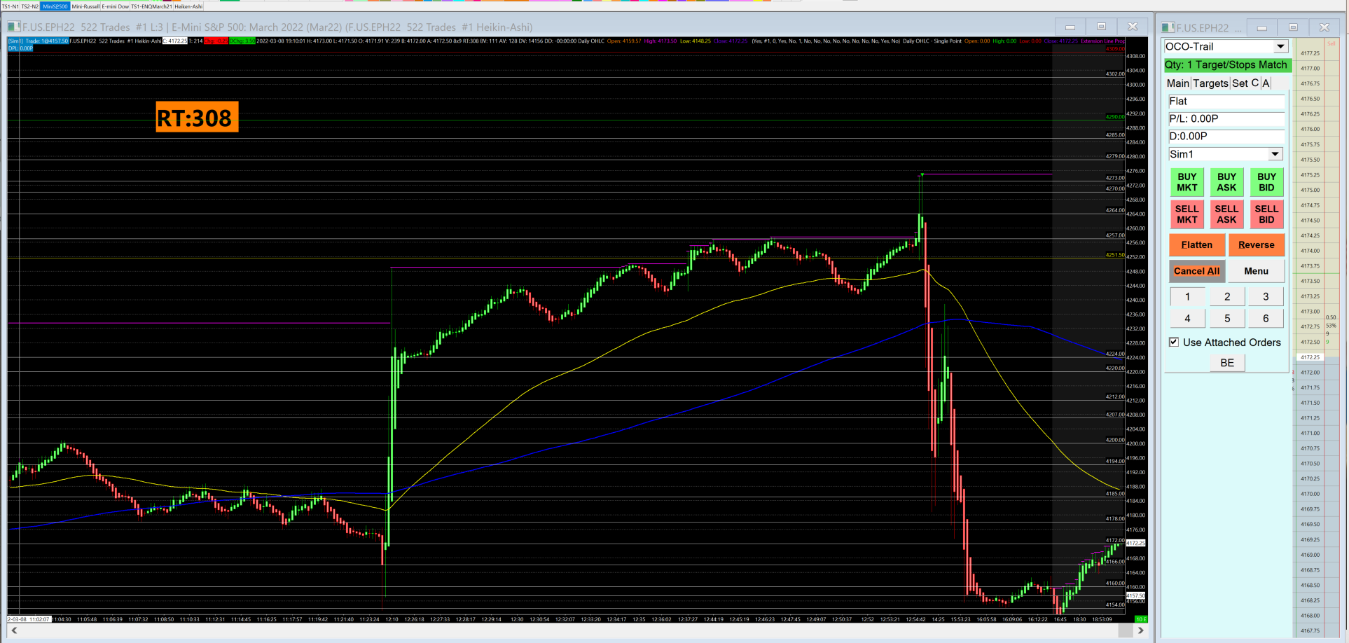 The charts are displaying the trading of today 3/8/2022 both of them have the same configuration; 522 Heiken-Ashi trades, with the same studio applied the wrong one is completely corrupted and not able to delete it |