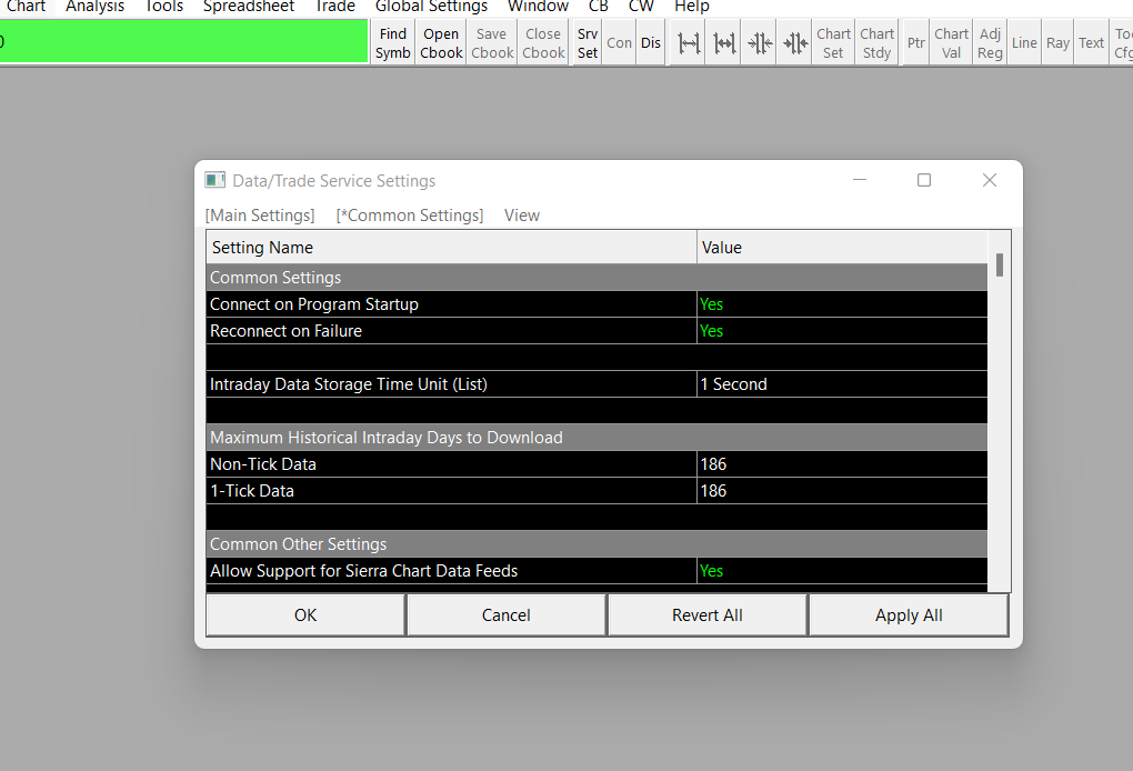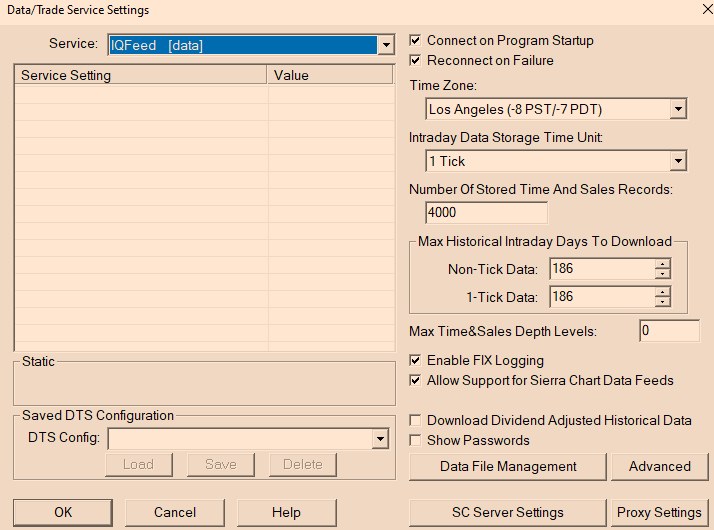 Select the "Main Settings" tab on that Data/Trade Service Settings window and then use this setting to select IQ Feed: Data/Trade Service Settings: Current Selected Service (Global Settings >> Data/Trade Service Settings >> Main Settings >> Service) Sierra Chart Support - Engineering Level Your definitive source for support. Other responses are from users. Try to keep your questions brief and to the point. Be aware of support policy: https://www.sierrachart.com/index.php?l=PostingInformation.php#GeneralInformation For the most reliable, advanced, and zero cost futures order routing, *change* to the Teton service: Sierra Chart Teton Futures Order Routing |