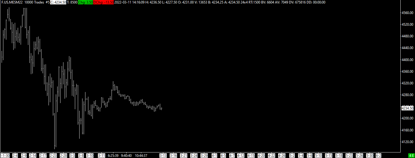 I'm not sure how to explain this, but when I changed the symbol from F.US.MESH22 to F.US.MESM22 I was left with the dates on the bottom projecting into the future by about 3 months which left a large blank space on the right side of the chart. I cannot find a way to correct this. I will attach an image, being that I am unsure if I am explaining myself right. https://www.sierrachart.com/image.php?Image=1647026171514.png
