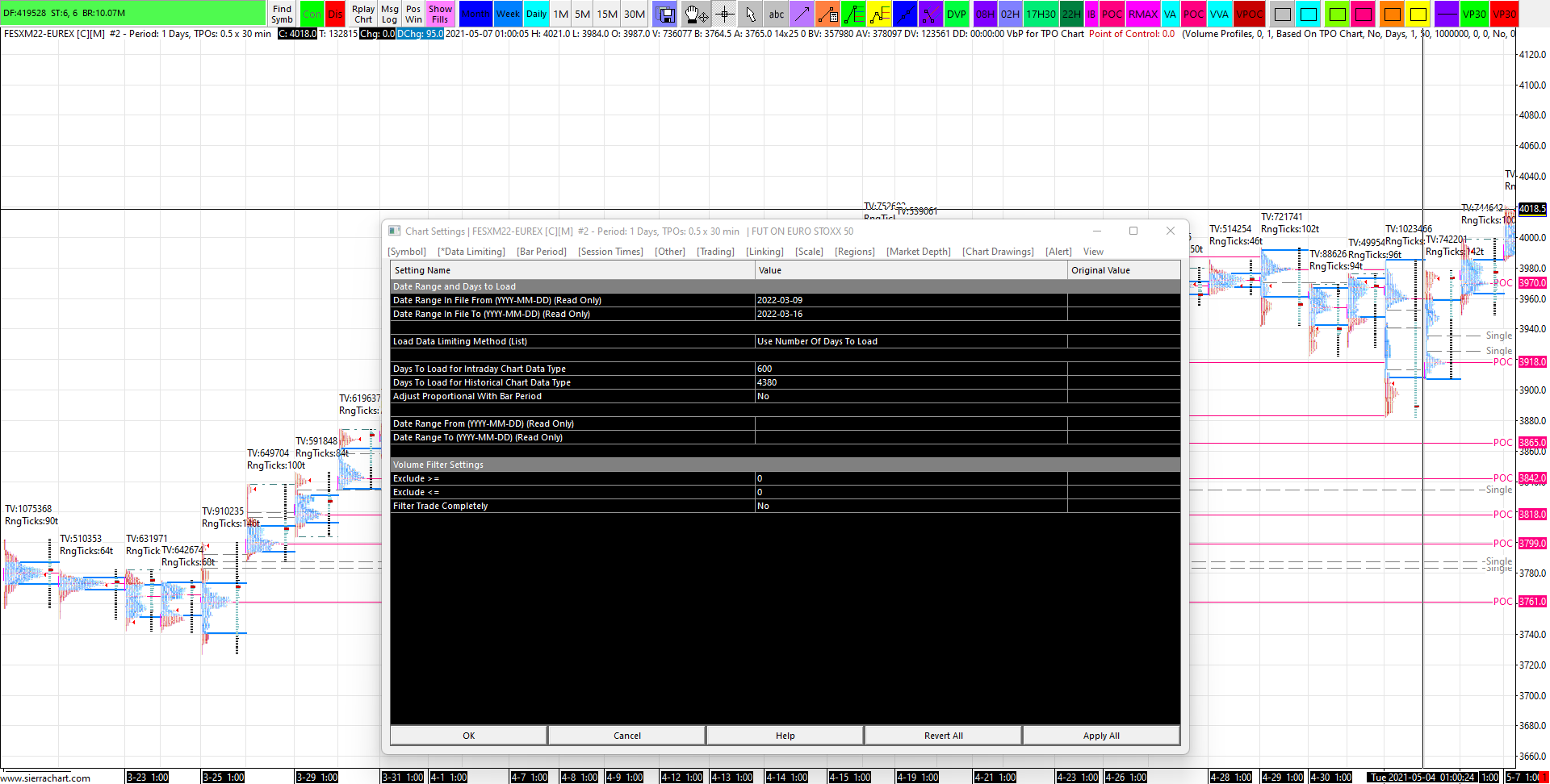As you can see on the both image attached, I try to load 600 days historical data and the date stop on the 2021-3-19. If I try to delete and reload the data, the software take 10 long minutes to reload exactly the same thing. I don't think I have change any settings but it could be. I have this problem for all the symbol unless FGBL.