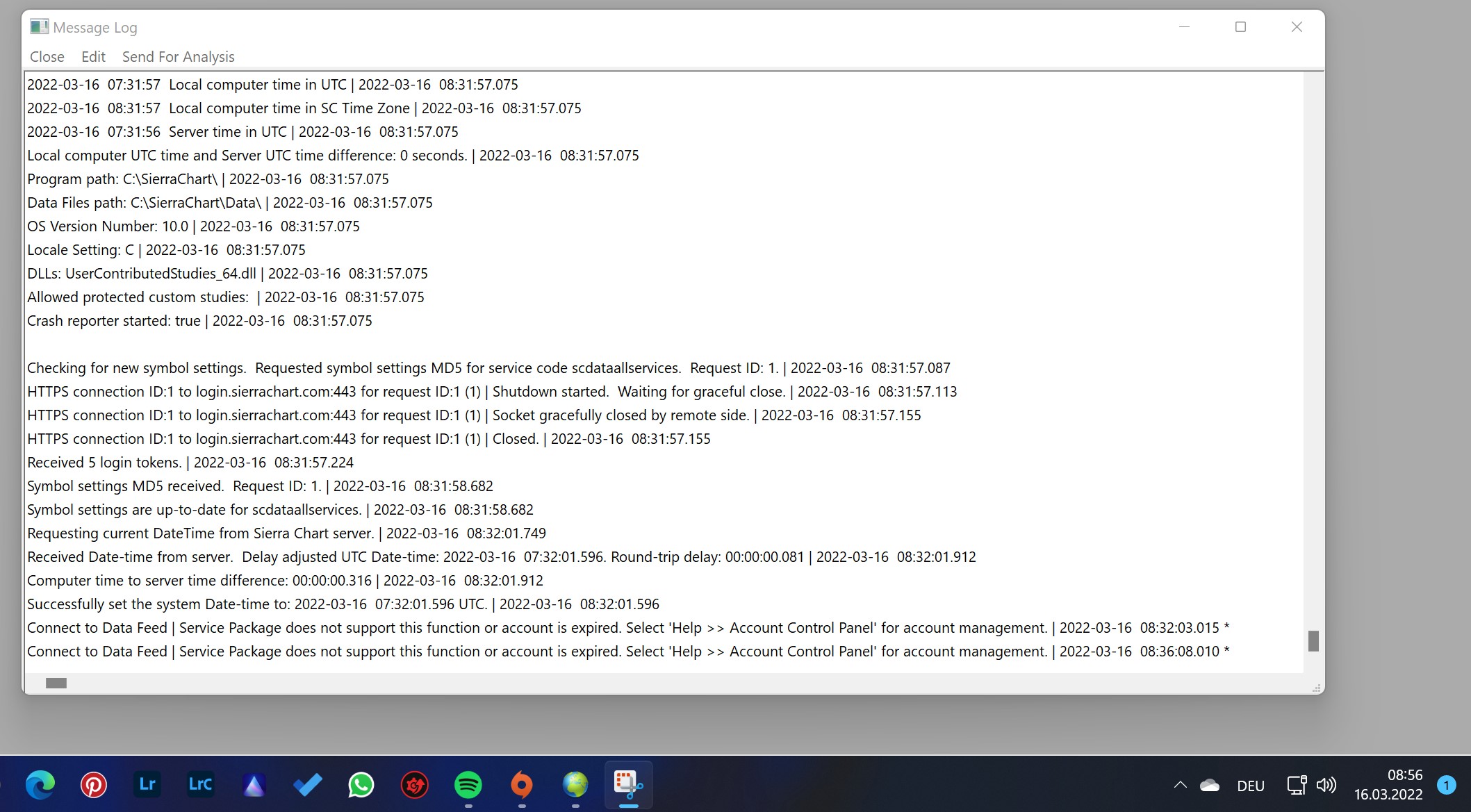 You never activated the trial. Documentation is here: Sierra Chart Trial Account We have activated your account. Therefore, there is nothing more you need to do in this regard. Sierra Chart Support - Engineering Level Your definitive source for support. Other responses are from users. Try to keep your questions brief and to the point. Be aware of support policy: https://www.sierrachart.com/index.php?l=PostingInformation.php#GeneralInformation For the most reliable, advanced, and zero cost futures order routing, *change* to the Teton service: Sierra Chart Teton Futures Order Routing |