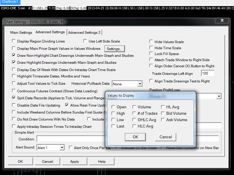 SC Team - This would be a simple question but unable to figure out how to turn off the values on Top Left of the chart. Tried various settings but unable to do so. Thanks |